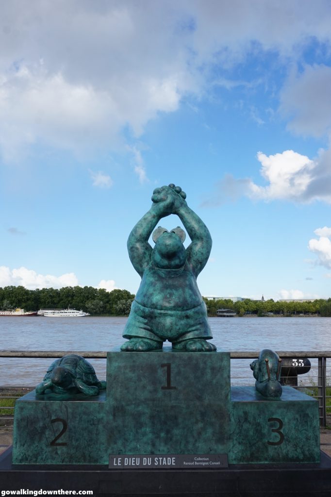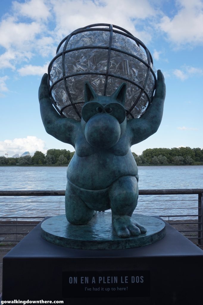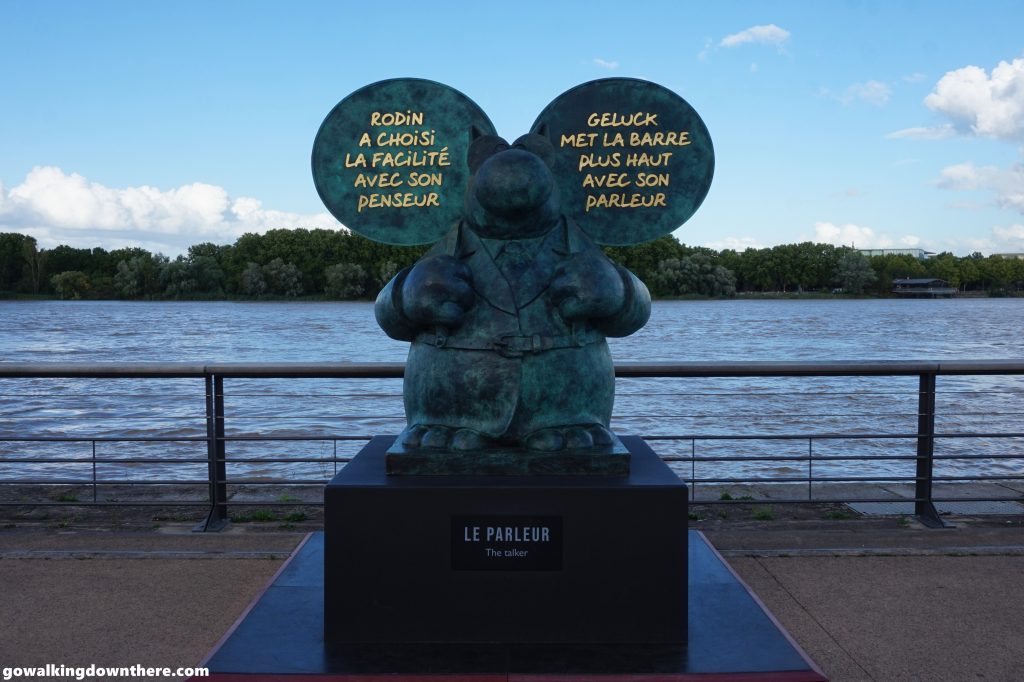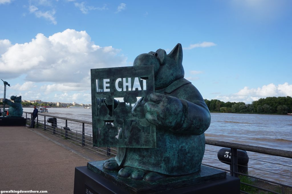 Philippe Geluck expose son Chat version 3 tonnes en bronze et grand format, le temps de quelques mois sur les quais Bordelais.