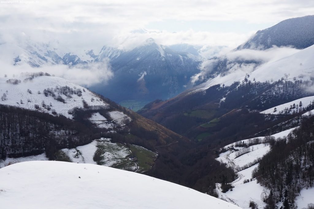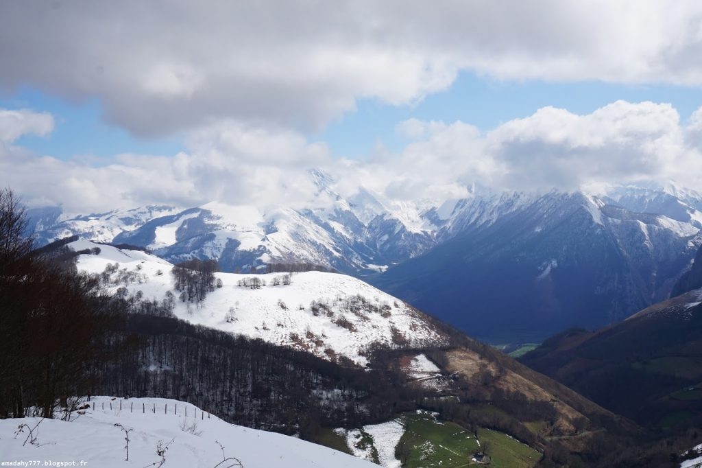 Au sein de mon travail, j'ai eu l'occasion de partir quelques jours en séjour à la montagne et ainsi profiter de ces magnifiques paysages. Ici, en direction de la cabane d'Iccheus près d'Accous. Le temps est au top, un beau soleil qui cogne et nous fait regretter d'avoir vêtu la totalité de nos combinaisons neige. Une vue à couper le souffle !