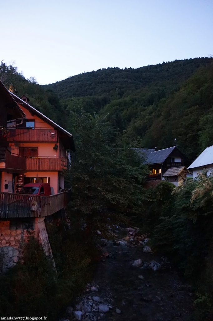 2720 Km parcourus ce jour depuis Bordeaux. Nous sommes arrivés en Slovénie, en passant par Bled. Déception à la vue du lac, qui me fait penser à Aix les bains et le lac du Bourget ou encore les rives du lac d'Annecy. Très touristique, aucun charme. Nous continuons notre route jusqu'à Bonhinj où nous trouverons un camping où nous poser pour 2 nuits. Nous passons la soirée en bordure du lac pour le dîner à admirer le coucher de soleil et nous rendons ensuite dans un petit village où il y avait une fête "locale", des locaux nous avaient donné le plan. Des personnes de tout âges vêtus à l'ancienne, petits spectacles et discours auxquels nous ne comprenons rien. Les habitants serviront ensuite des verres de shooter comprenant des liqueurs extrêmement fortes et surement locale. Bien que tout ce que nous avons vu jusqu'à présent était vraiment très beau, mon coup de cœur va pour cette région en Slovénie. Un charme et une tranquillité que je n'ai pas trouvé ailleurs, des habitants d'une grande simplicité et d'une belle gentillesse.