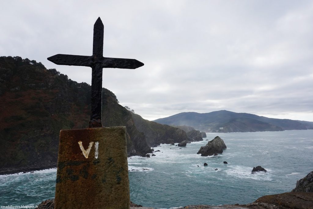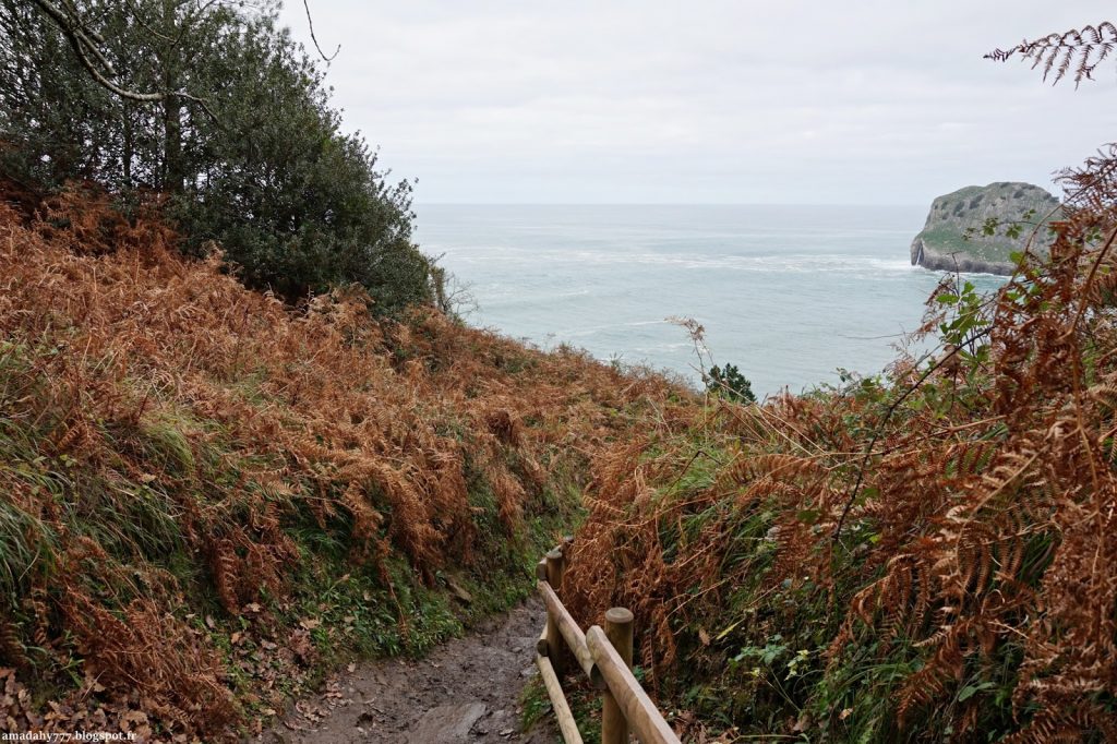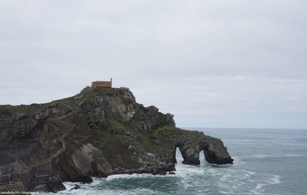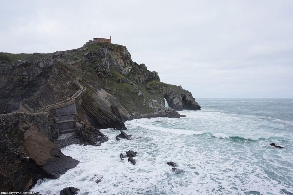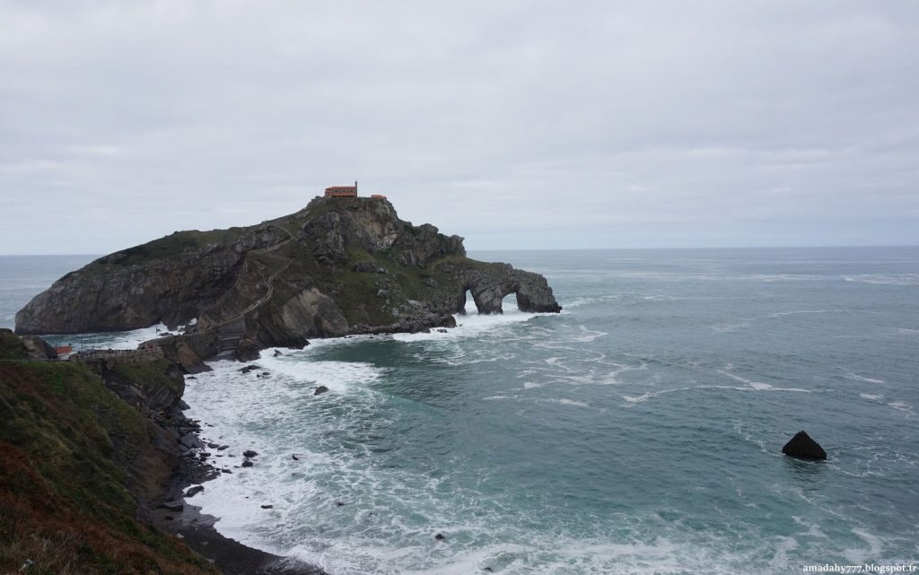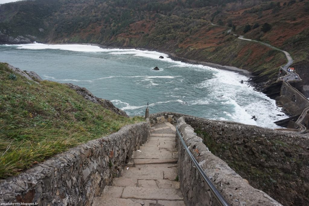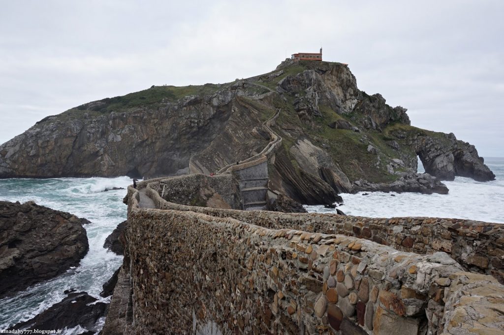 C'est à noel, en Espagne, que nous visitons San Juan de Gaztelugatxe, non loin de Bilbao. Magnifique presqu’île qu'il faut mériter par une marche périlleuse. Le chemin principal est en pente raide et surtout, boueux et glissant. Il faut ensuite monter les 200 marches et quelques pour se rentre jusqu'à la petite église où nous pouvons sonner la cloche comme bon nous semble. Pour le retour, nous prenons un tout autre chemin, plus long, avec une côte bien prononcée mais qui me met en forme. Celle-ci rejoint la route et les chutes sont moins risquées par ce temps.