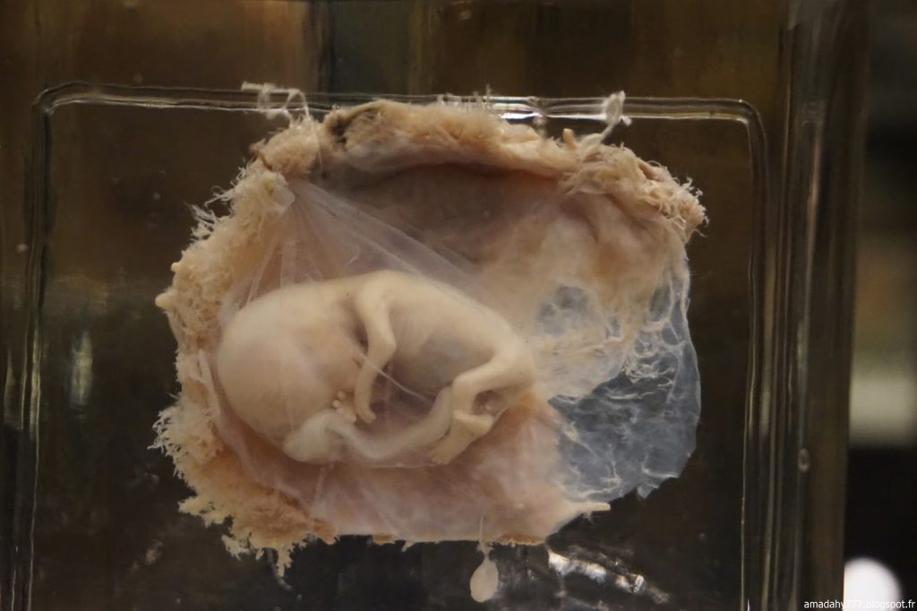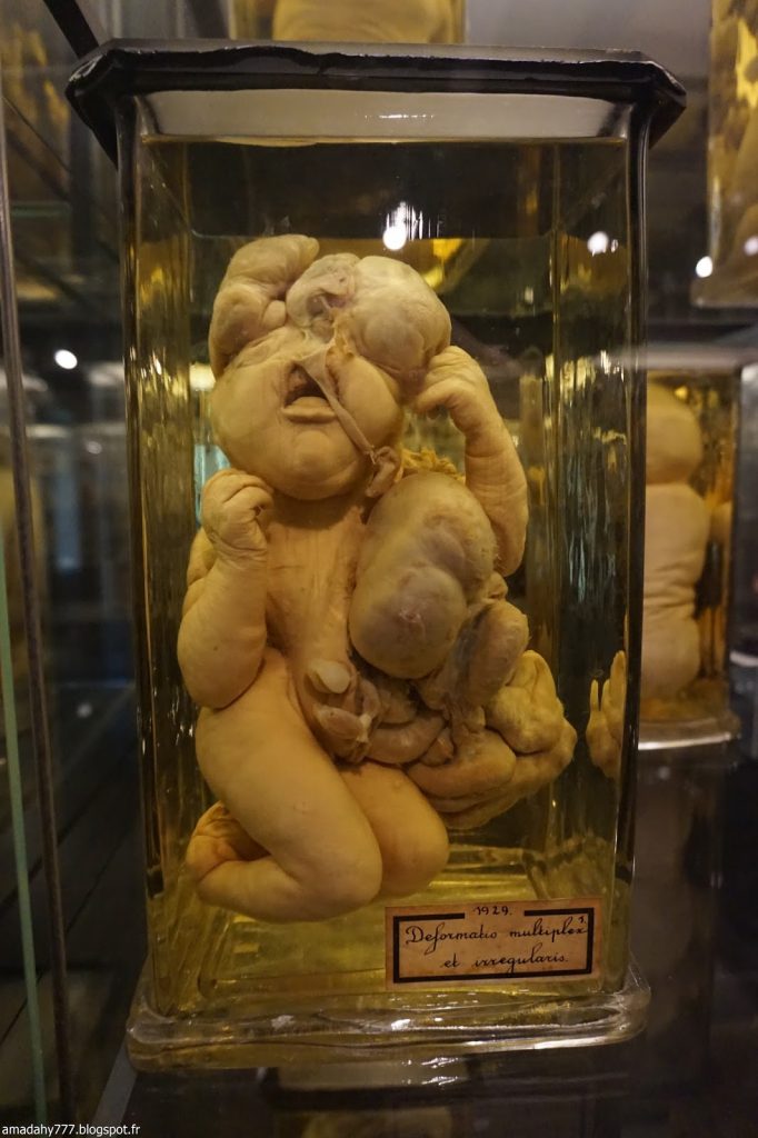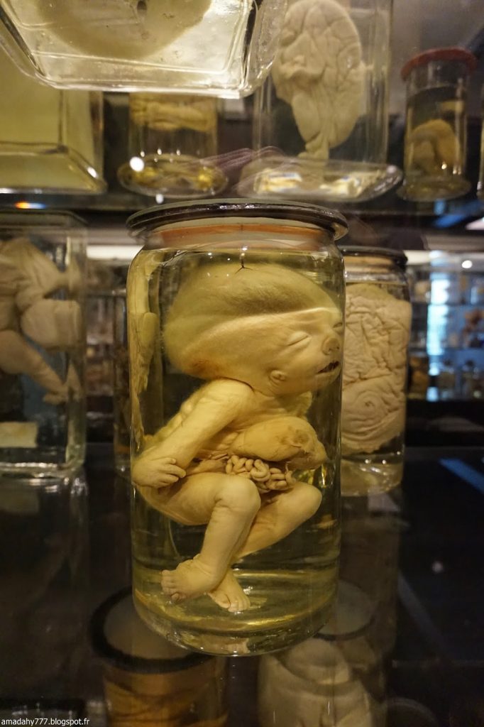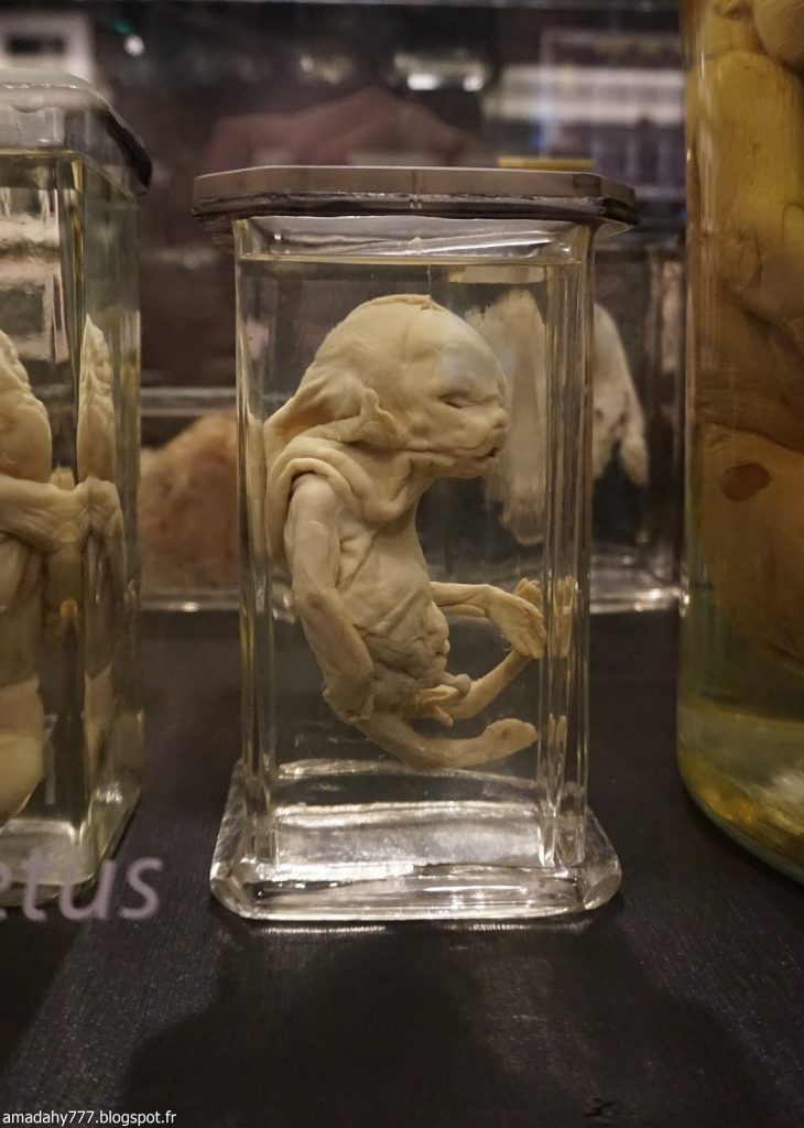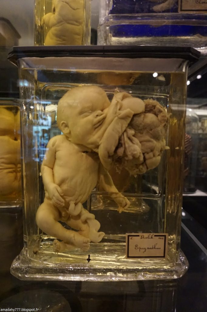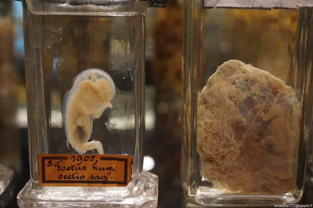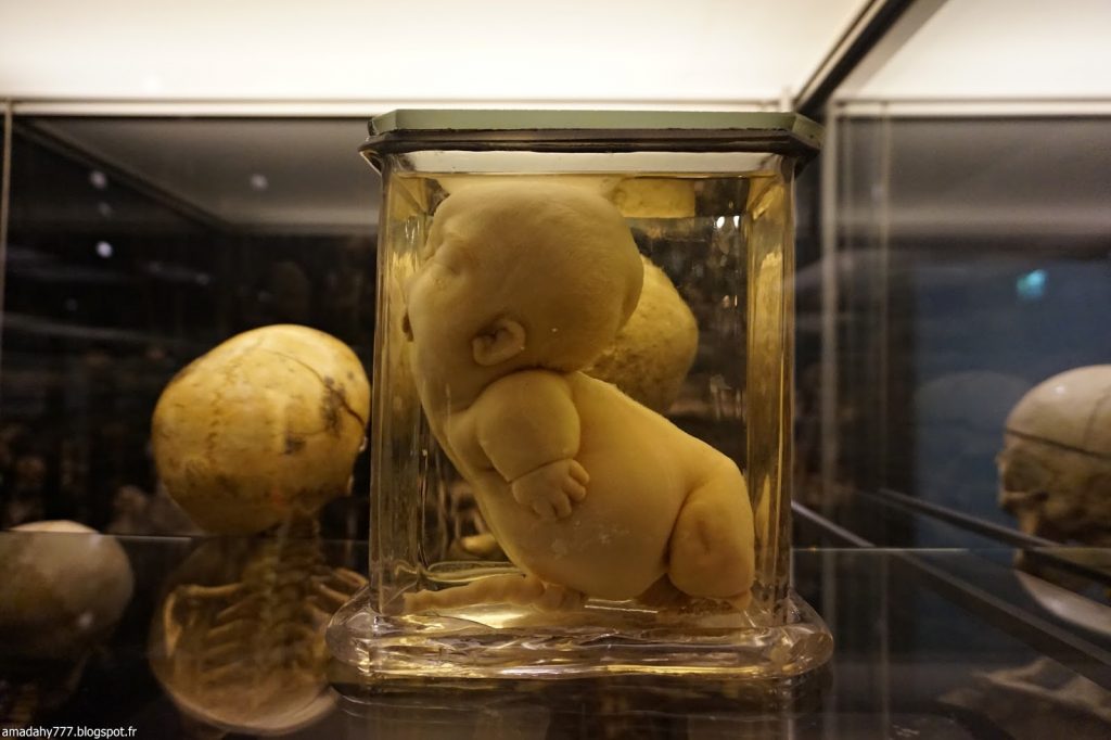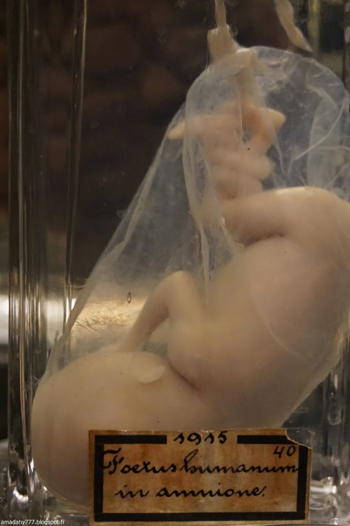 L'iniencéphalie est une malformation de l'arrière du crane / vertèbres, avec une absence de cou, dont l'origine est multifactorielle. "cyclopie", malformation génétique L'anencéphalie est une maladie congénitale qui cause une absence totale, ou en partie de cerveau, de crane. Joli petit dauphin Collection de scrotums Dans les petits pots : des calculs renaux bien énormes tétons L'ichtyose foetale, ou ichtyose harlequin ou encore "bébé collodion". La peau est brune, écailleuse, formant des croûtes. Très sèche, elle empêche les mouvements du bébé. La Sirénomélie, ou syndrome de la sirène, est une maladie fœtale où les membres inférieurs se forment de façon fusionnés. Anus et vulves pénis de foetus Pénis en coupe sagitale et en coupe transverse Défaut de la fermeture de la paroi thoracique Joli petit sternum Alien, la légende ? Celui de droite, on dirait un chat Le foetus macéré est un foetus mort in utéro qui a eu le temps de macérer et de se décomposer dans son liquide amniotique La grossesse molaire est due à un oeuf fertilisé qui présente une anomalie chromosomique fœtus papyracé est un fœtus mort in utero, aplati et desséché côtoyant un jumeau normal représentant une forme possible du syndrome transfuseur-transfusé