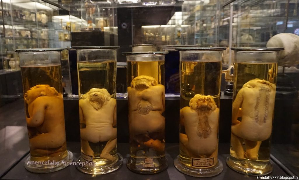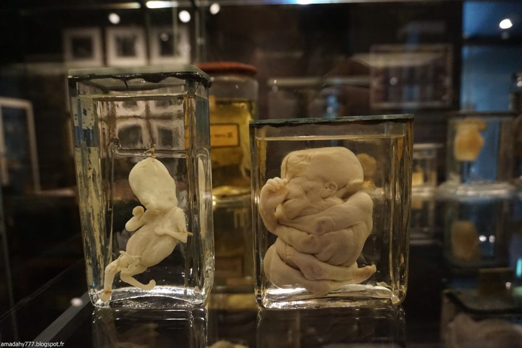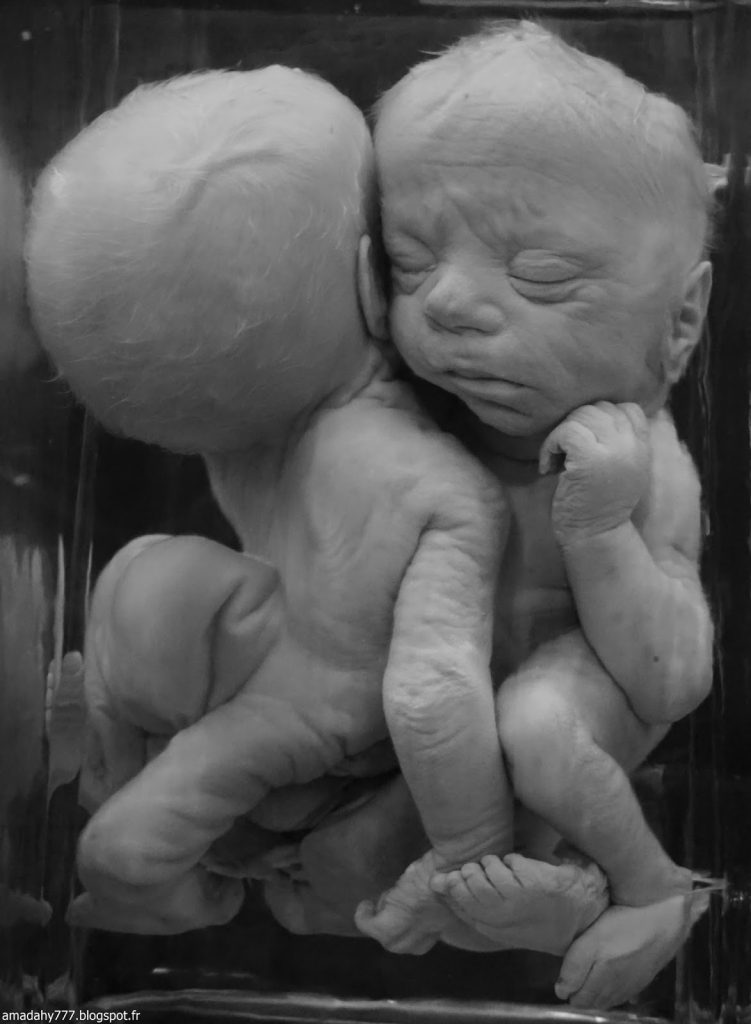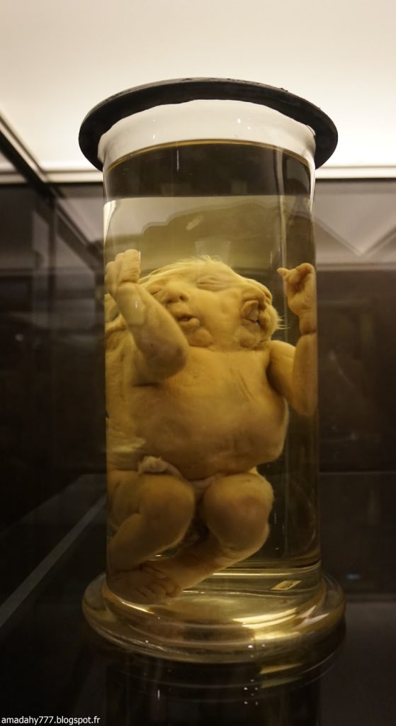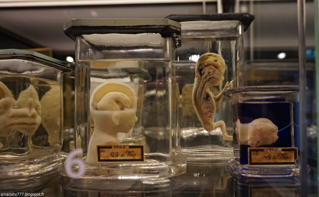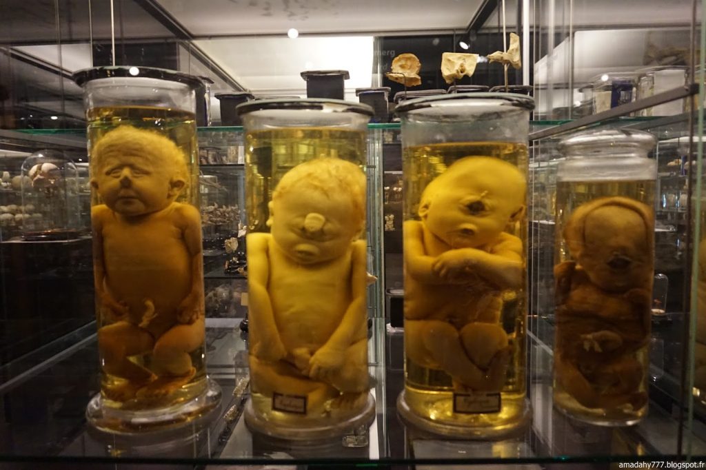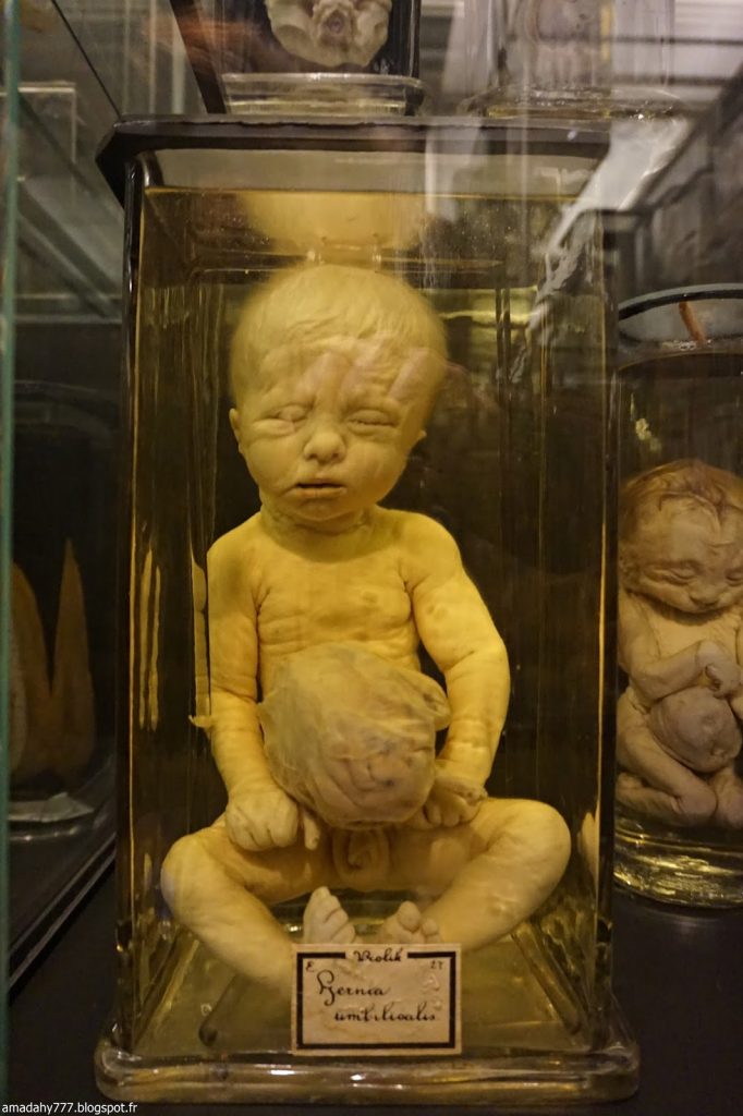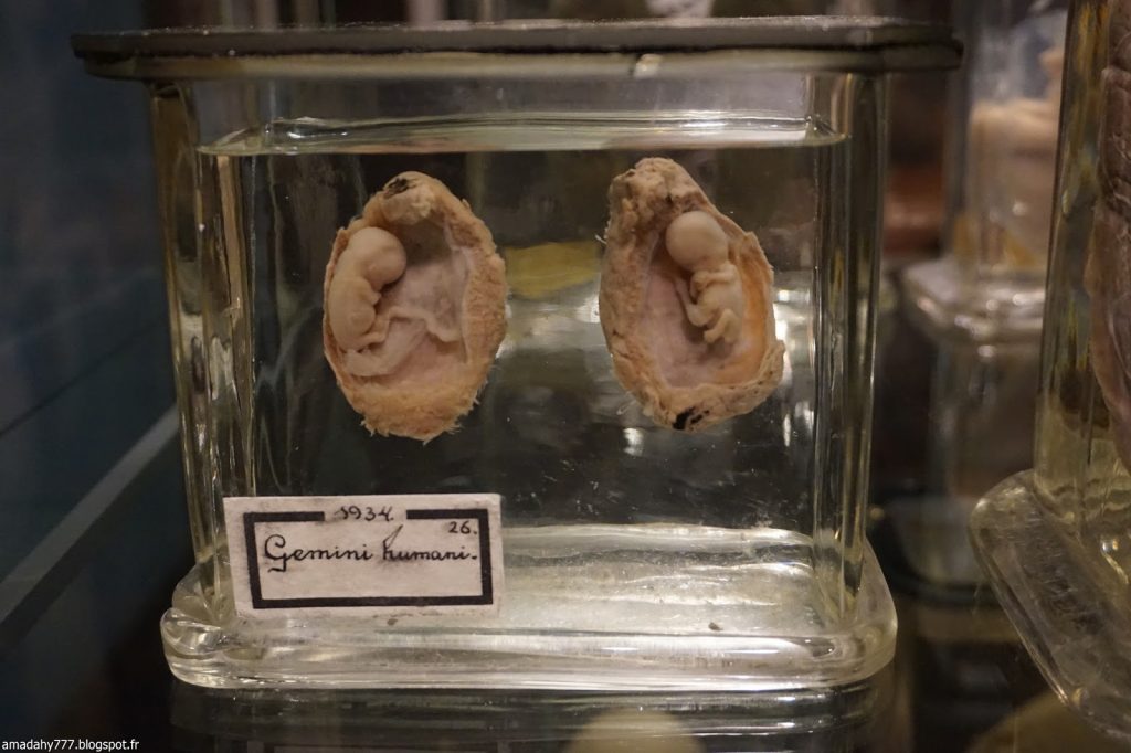 L'iniencéphalie est une malformation de l'arrière du crane / vertèbres, avec une absence de cou, dont l'origine est multifactorielle. "cyclopie", malformation génétique L'anencéphalie est une maladie congénitale qui cause une absence totale, ou en partie de cerveau, de crane. Joli petit dauphin Collection de scrotums Dans les petits pots : des calculs renaux bien énormes tétons L'ichtyose foetale, ou ichtyose harlequin ou encore "bébé collodion". La peau est brune, écailleuse, formant des croûtes. Très sèche, elle empêche les mouvements du bébé. La Sirénomélie, ou syndrome de la sirène, est une maladie fœtale où les membres inférieurs se forment de façon fusionnés. Anus et vulves pénis de foetus Pénis en coupe sagitale et en coupe transverse Défaut de la fermeture de la paroi thoracique Joli petit sternum Alien, la légende ? Celui de droite, on dirait un chat Le foetus macéré est un foetus mort in utéro qui a eu le temps de macérer et de se décomposer dans son liquide amniotique La grossesse molaire est due à un oeuf fertilisé qui présente une anomalie chromosomique fœtus papyracé est un fœtus mort in utero, aplati et desséché côtoyant un jumeau normal représentant une forme possible du syndrome transfuseur-transfusé