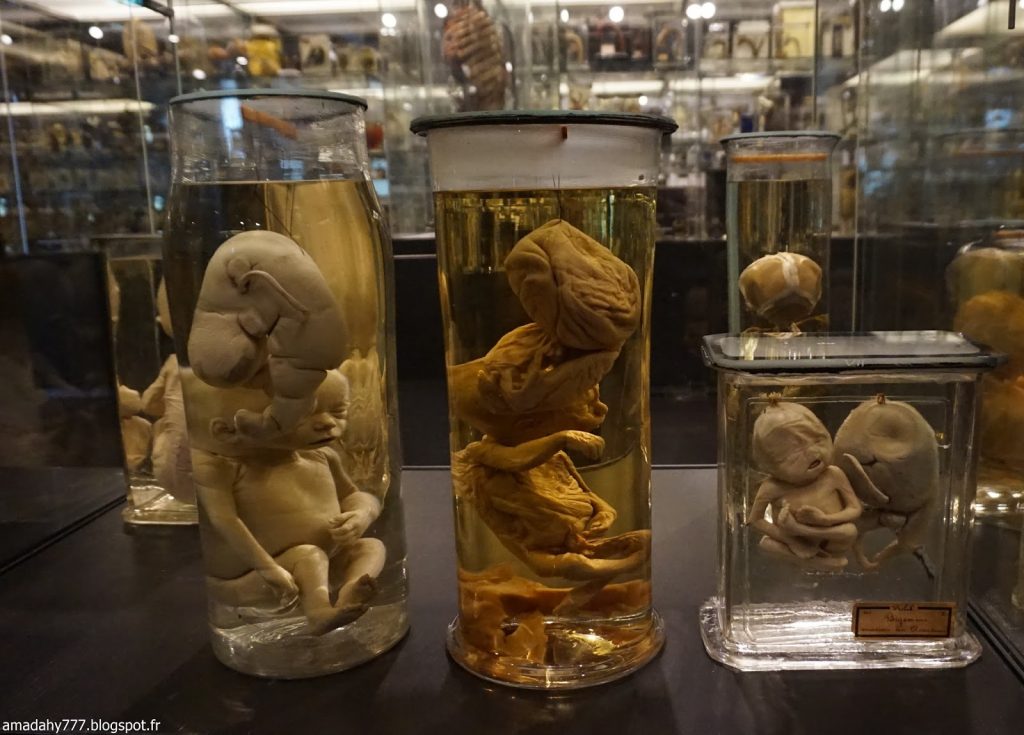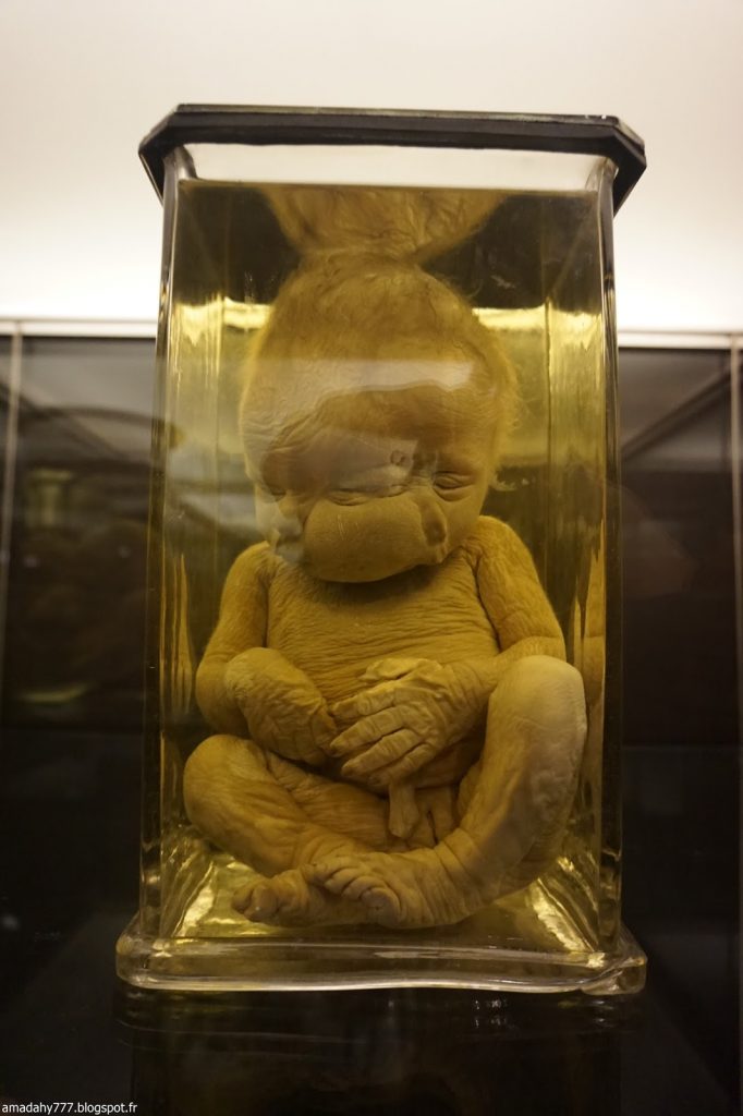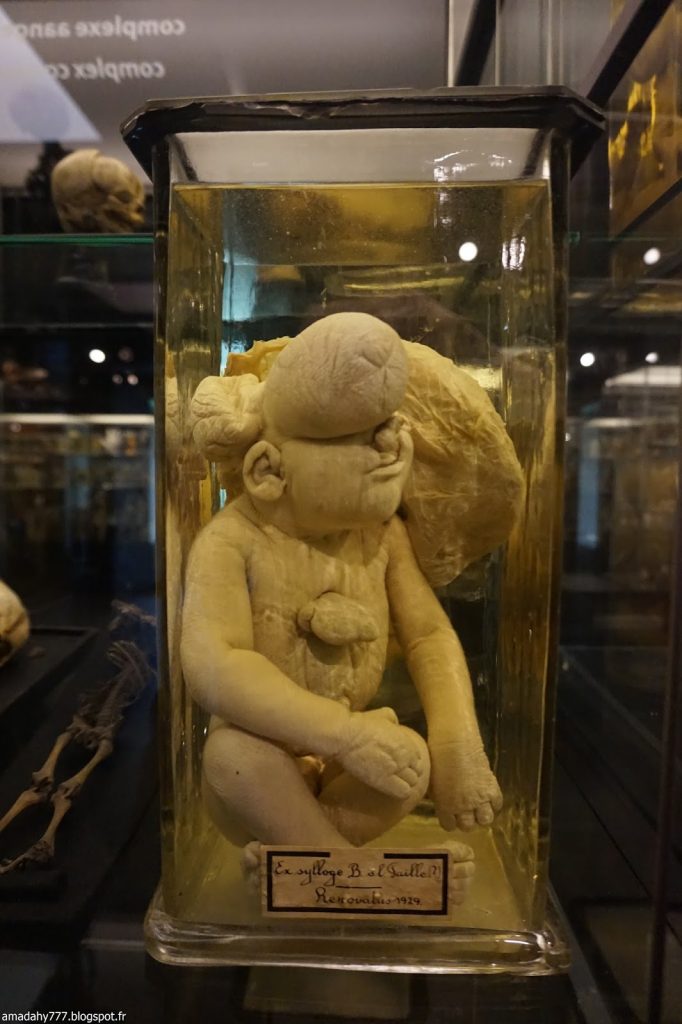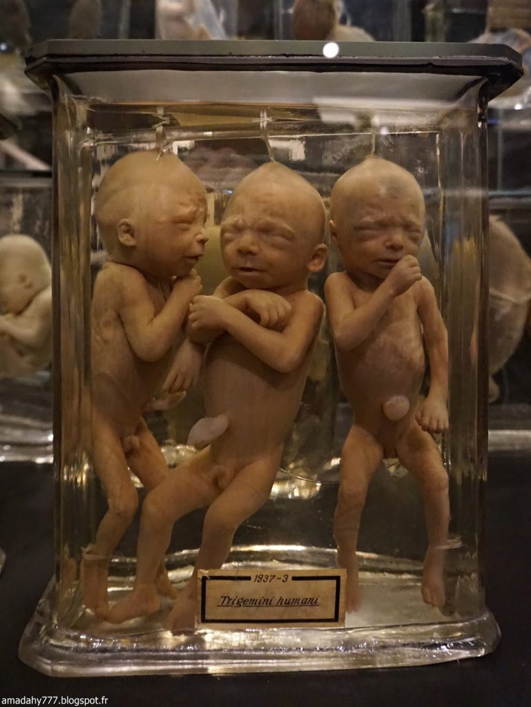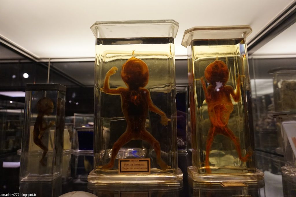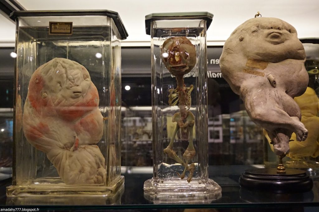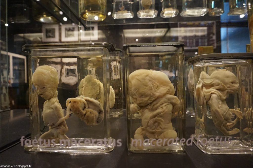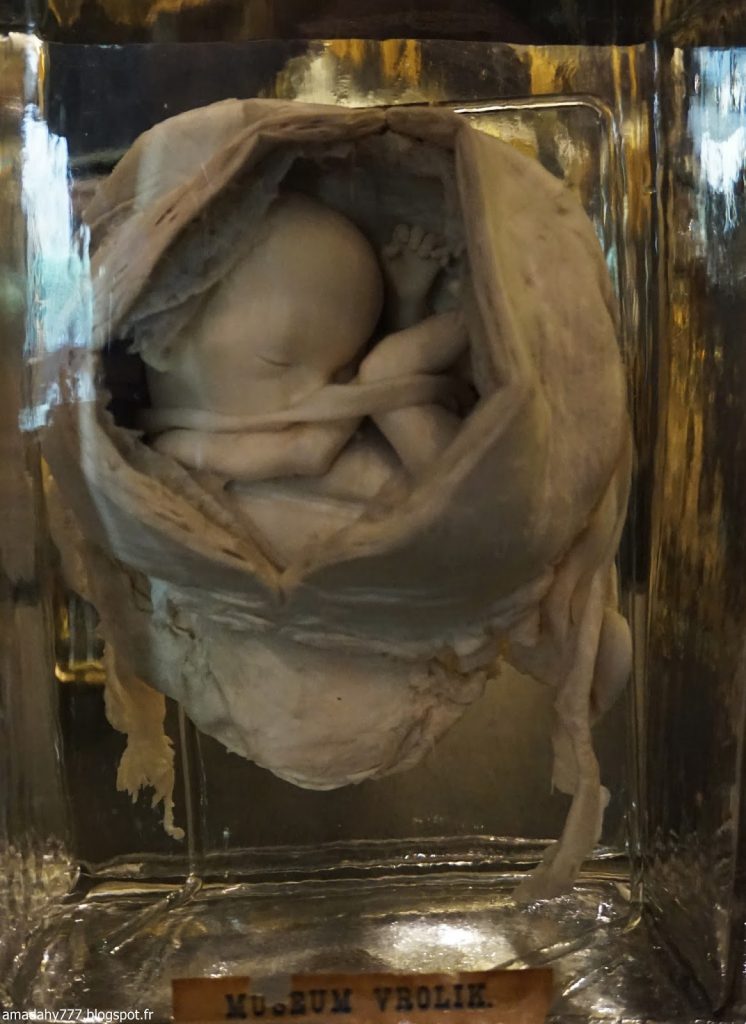 L'iniencéphalie est une malformation de l'arrière du crane / vertèbres, avec une absence de cou, dont l'origine est multifactorielle. "cyclopie", malformation génétique L'anencéphalie est une maladie congénitale qui cause une absence totale, ou en partie de cerveau, de crane. Joli petit dauphin Collection de scrotums Dans les petits pots : des calculs renaux bien énormes tétons L'ichtyose foetale, ou ichtyose harlequin ou encore "bébé collodion". La peau est brune, écailleuse, formant des croûtes. Très sèche, elle empêche les mouvements du bébé. La Sirénomélie, ou syndrome de la sirène, est une maladie fœtale où les membres inférieurs se forment de façon fusionnés. Anus et vulves pénis de foetus Pénis en coupe sagitale et en coupe transverse Défaut de la fermeture de la paroi thoracique Joli petit sternum Alien, la légende ? Celui de droite, on dirait un chat Le foetus macéré est un foetus mort in utéro qui a eu le temps de macérer et de se décomposer dans son liquide amniotique La grossesse molaire est due à un oeuf fertilisé qui présente une anomalie chromosomique fœtus papyracé est un fœtus mort in utero, aplati et desséché côtoyant un jumeau normal représentant une forme possible du syndrome transfuseur-transfusé