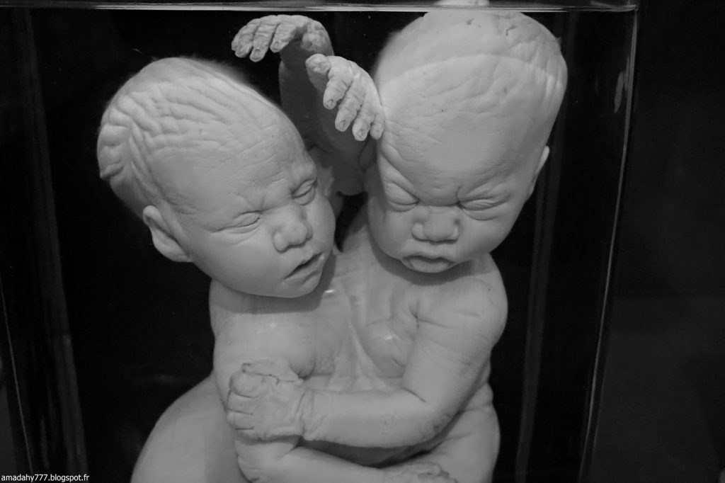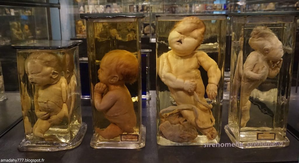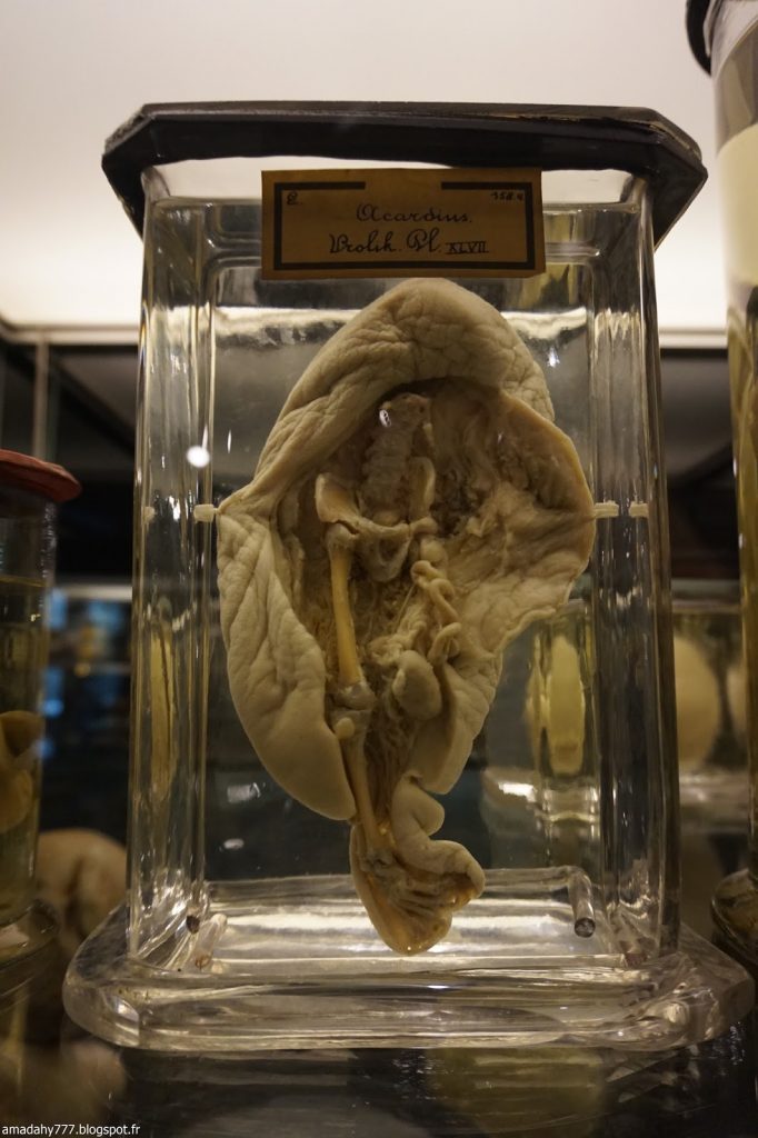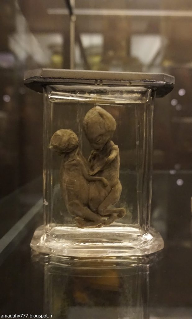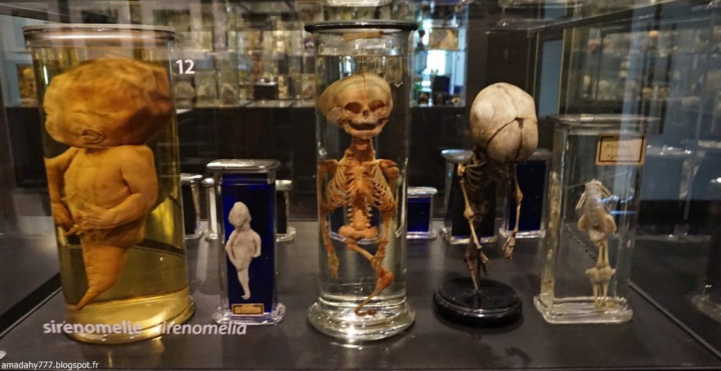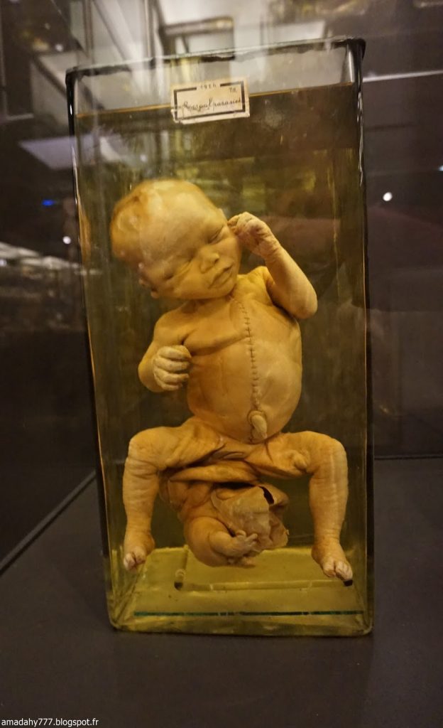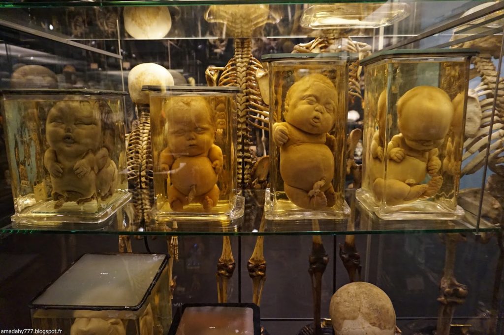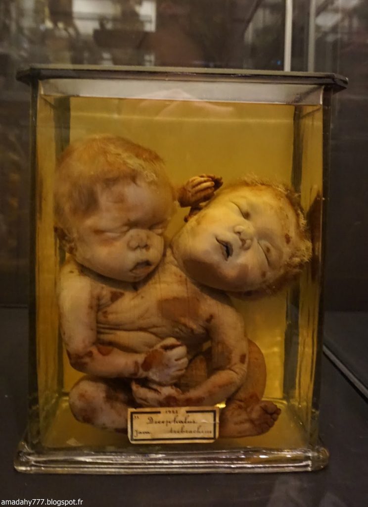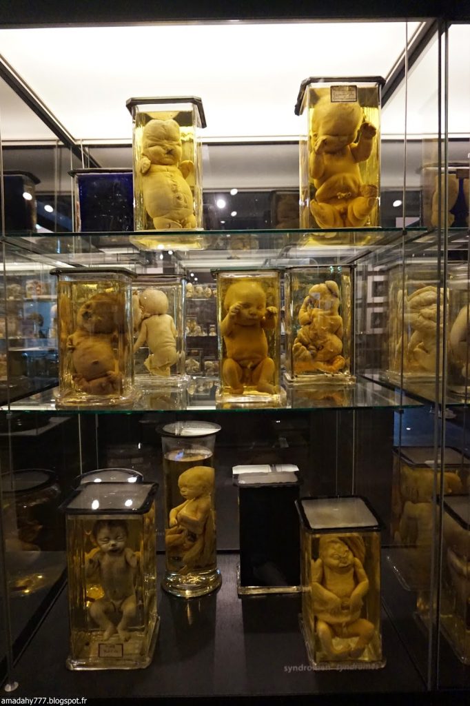 L'iniencéphalie est une malformation de l'arrière du crane / vertèbres, avec une absence de cou, dont l'origine est multifactorielle. "cyclopie", malformation génétique L'anencéphalie est une maladie congénitale qui cause une absence totale, ou en partie de cerveau, de crane. Joli petit dauphin Collection de scrotums Dans les petits pots : des calculs renaux bien énormes tétons L'ichtyose foetale, ou ichtyose harlequin ou encore "bébé collodion". La peau est brune, écailleuse, formant des croûtes. Très sèche, elle empêche les mouvements du bébé. La Sirénomélie, ou syndrome de la sirène, est une maladie fœtale où les membres inférieurs se forment de façon fusionnés. Anus et vulves pénis de foetus Pénis en coupe sagitale et en coupe transverse Défaut de la fermeture de la paroi thoracique Joli petit sternum Alien, la légende ? Celui de droite, on dirait un chat Le foetus macéré est un foetus mort in utéro qui a eu le temps de macérer et de se décomposer dans son liquide amniotique La grossesse molaire est due à un oeuf fertilisé qui présente une anomalie chromosomique fœtus papyracé est un fœtus mort in utero, aplati et desséché côtoyant un jumeau normal représentant une forme possible du syndrome transfuseur-transfusé