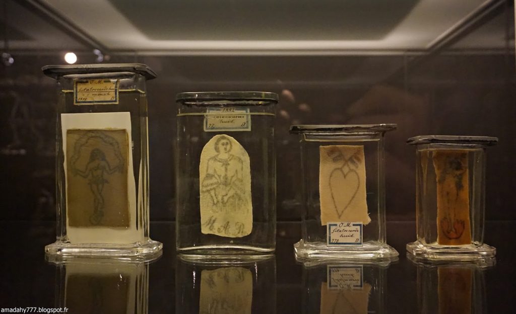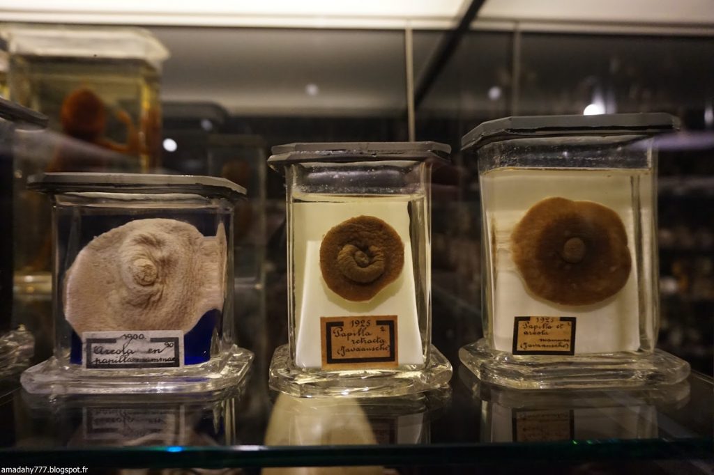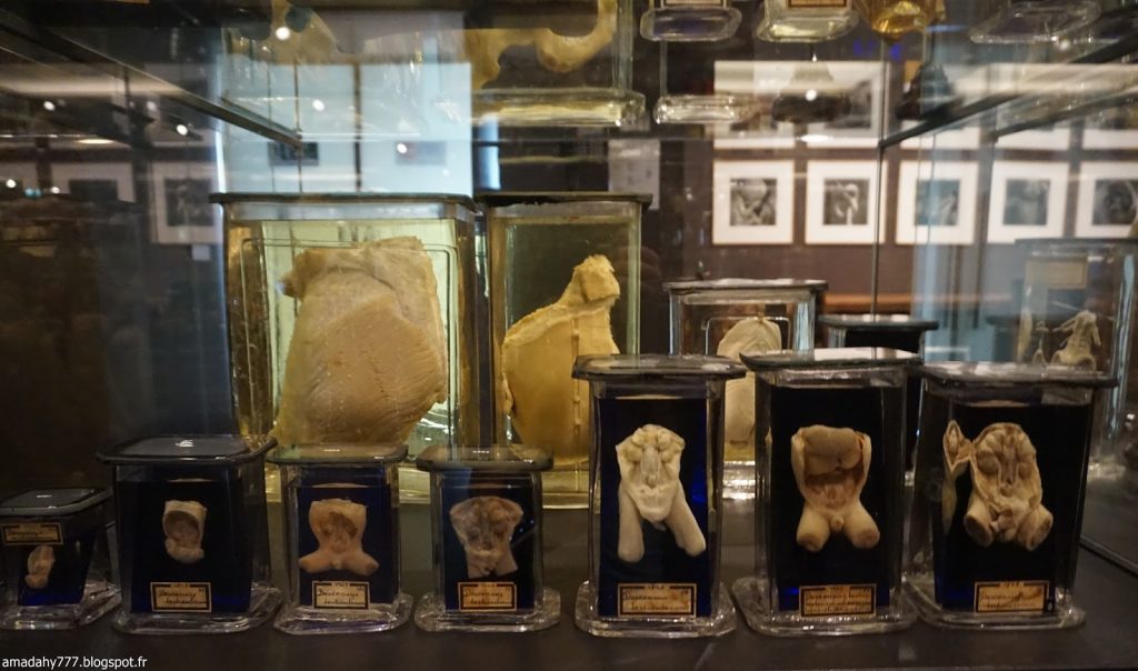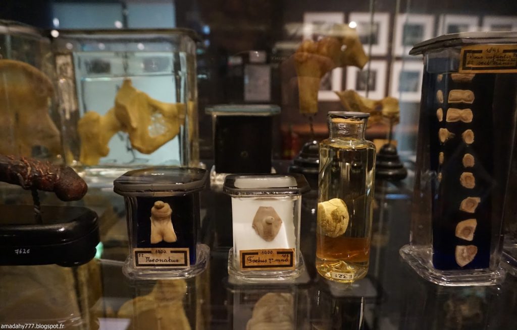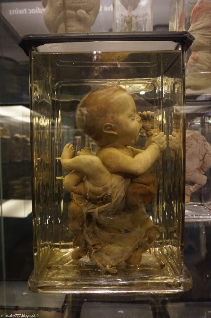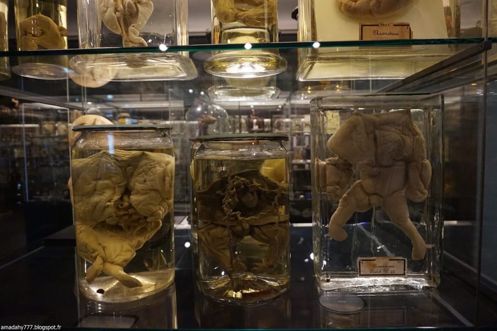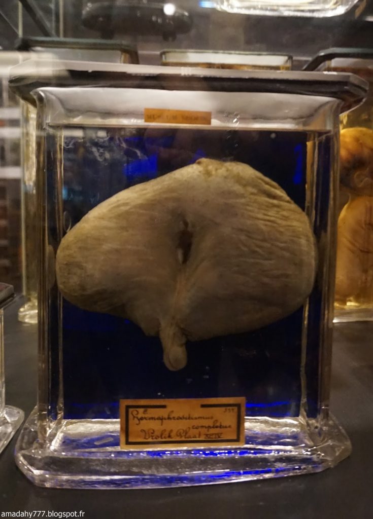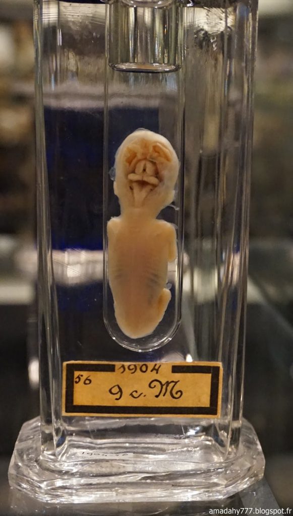 L'iniencéphalie est une malformation de l'arrière du crane / vertèbres, avec une absence de cou, dont l'origine est multifactorielle. "cyclopie", malformation génétique L'anencéphalie est une maladie congénitale qui cause une absence totale, ou en partie de cerveau, de crane. Joli petit dauphin Collection de scrotums Dans les petits pots : des calculs renaux bien énormes tétons L'ichtyose foetale, ou ichtyose harlequin ou encore "bébé collodion". La peau est brune, écailleuse, formant des croûtes. Très sèche, elle empêche les mouvements du bébé. La Sirénomélie, ou syndrome de la sirène, est une maladie fœtale où les membres inférieurs se forment de façon fusionnés. Anus et vulves pénis de foetus Pénis en coupe sagitale et en coupe transverse Défaut de la fermeture de la paroi thoracique Joli petit sternum Alien, la légende ? Celui de droite, on dirait un chat Le foetus macéré est un foetus mort in utéro qui a eu le temps de macérer et de se décomposer dans son liquide amniotique La grossesse molaire est due à un oeuf fertilisé qui présente une anomalie chromosomique fœtus papyracé est un fœtus mort in utero, aplati et desséché côtoyant un jumeau normal représentant une forme possible du syndrome transfuseur-transfusé
