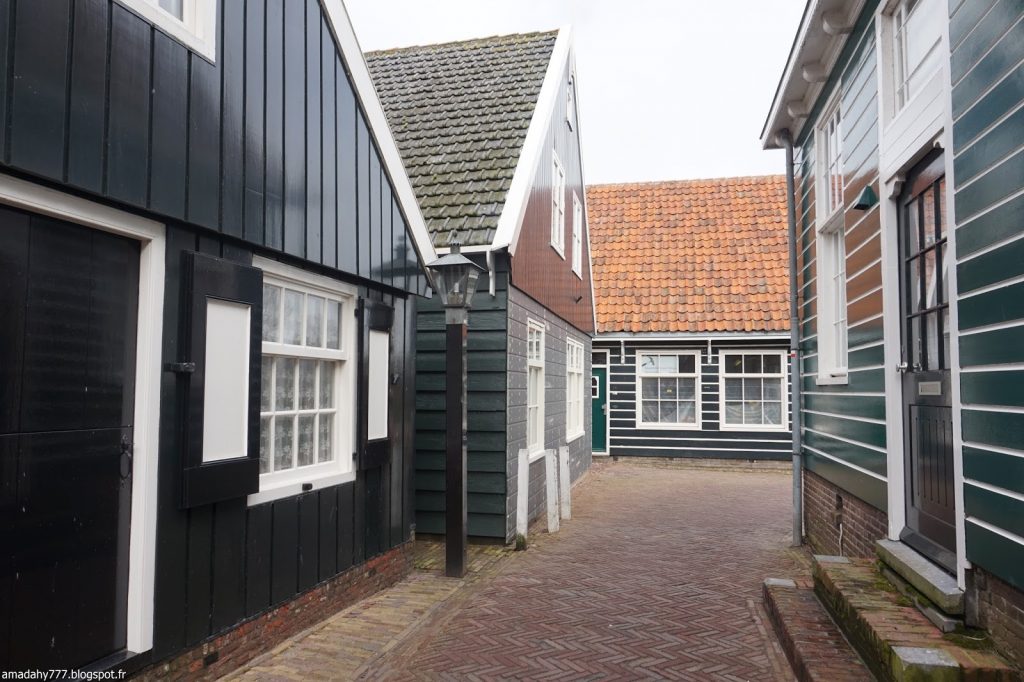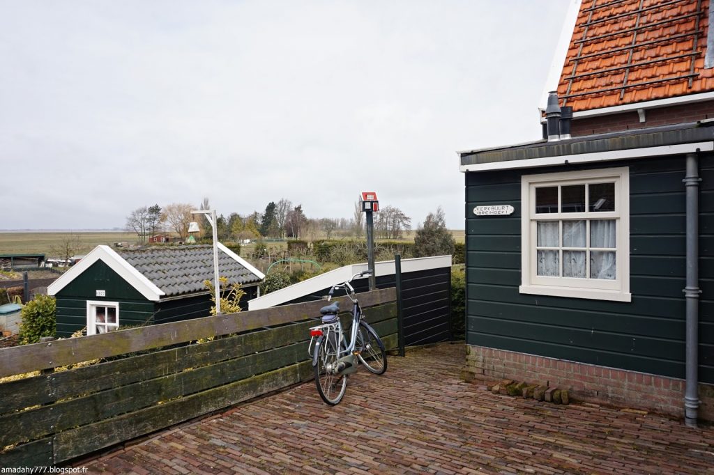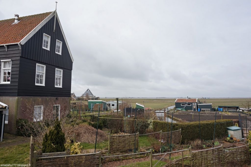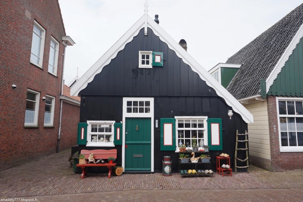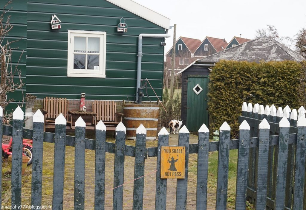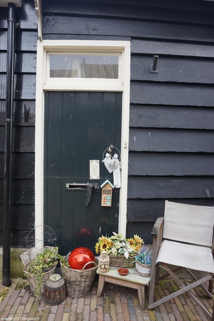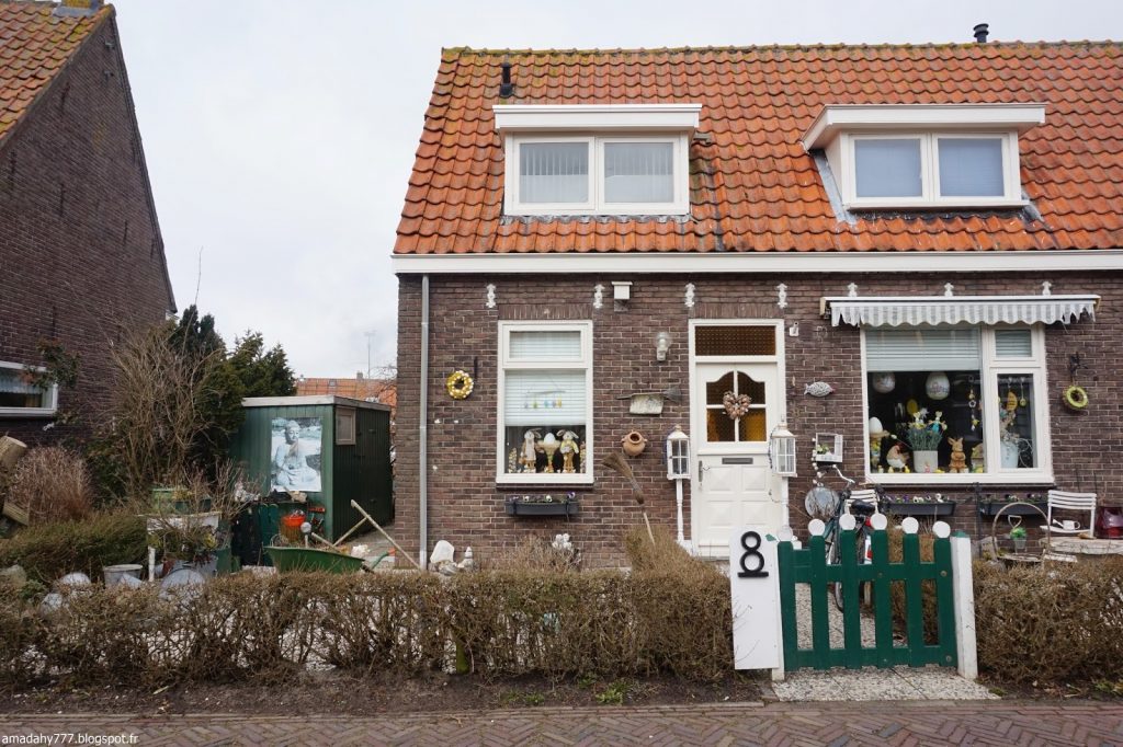 Marken est un beau petit village de pécheurs assez désert et silencieux en cette période. La pluie n'était pas loin, ce qui donnait l'impression d'être dans un village anglais sur la côte. Certaines maisons sont décorées à l'excès sur leur devant de porte, jusqu'au plus kitsch possible.