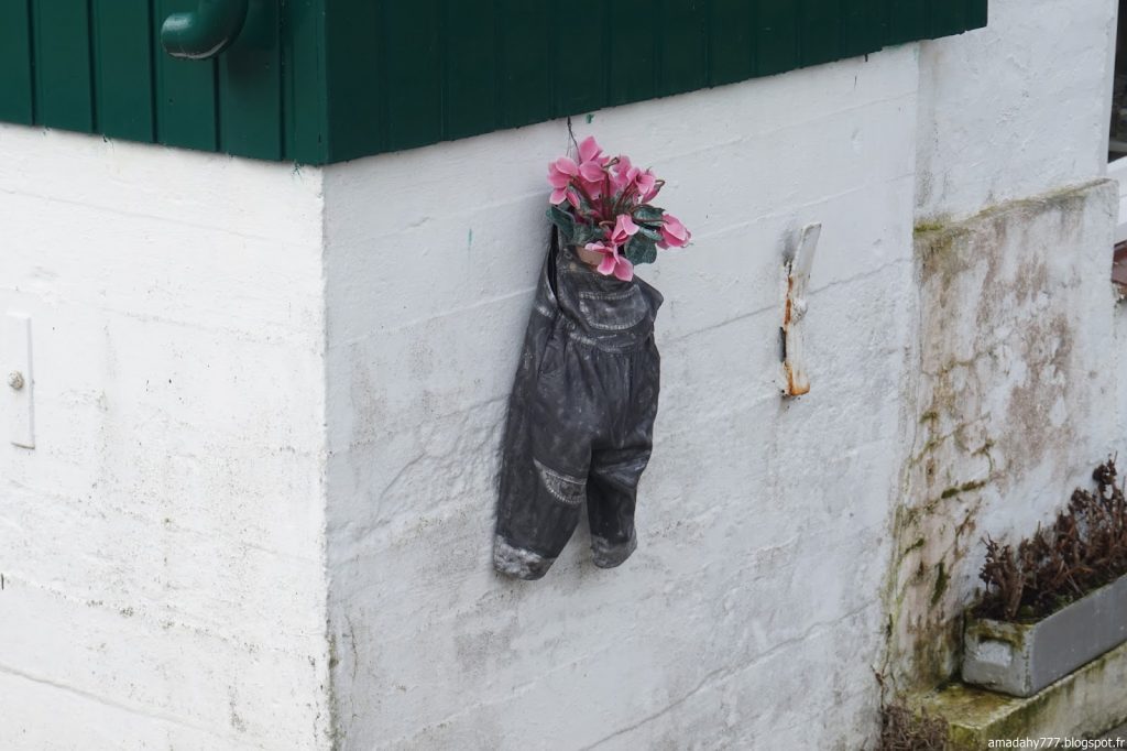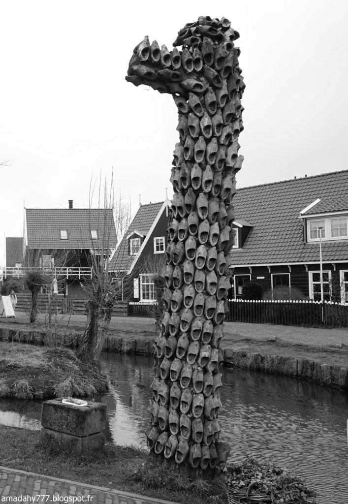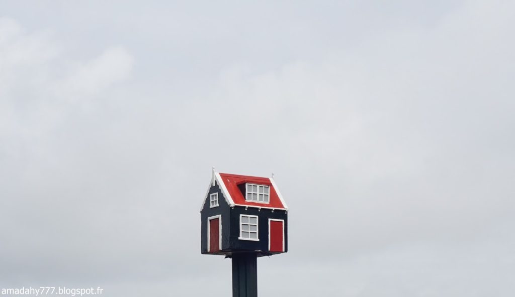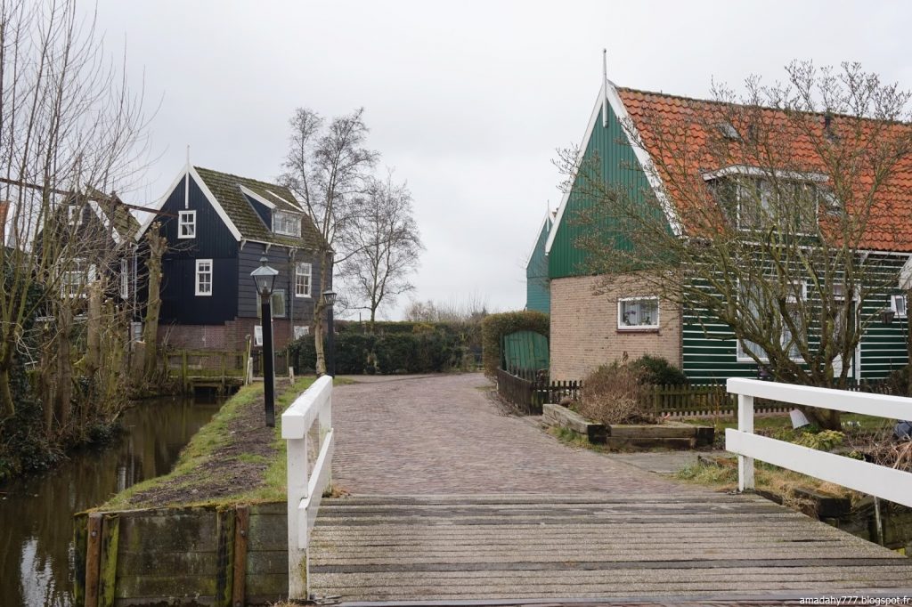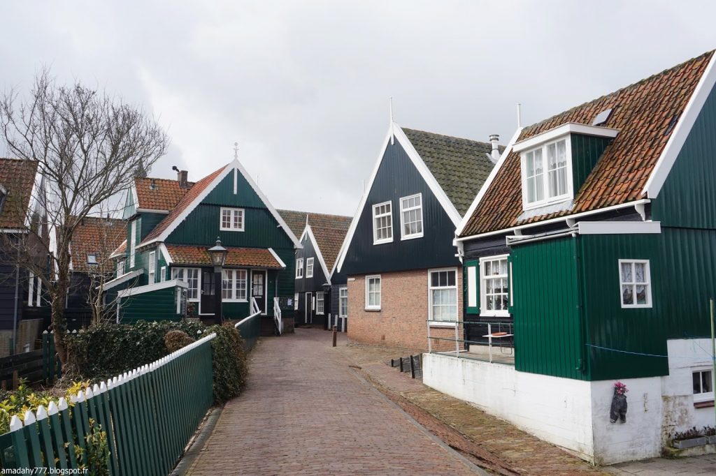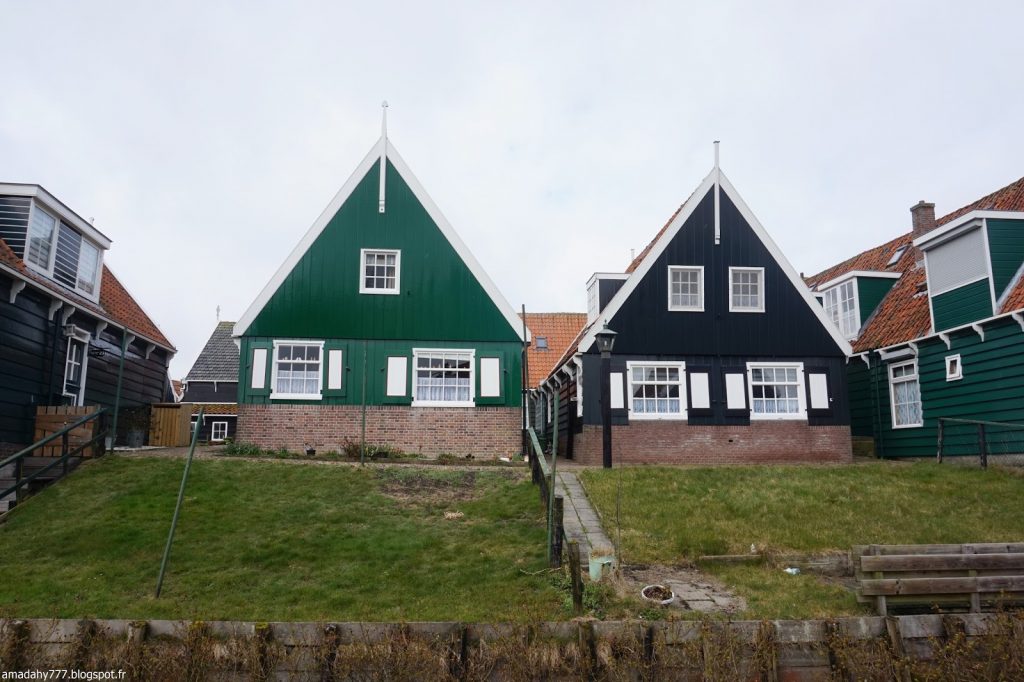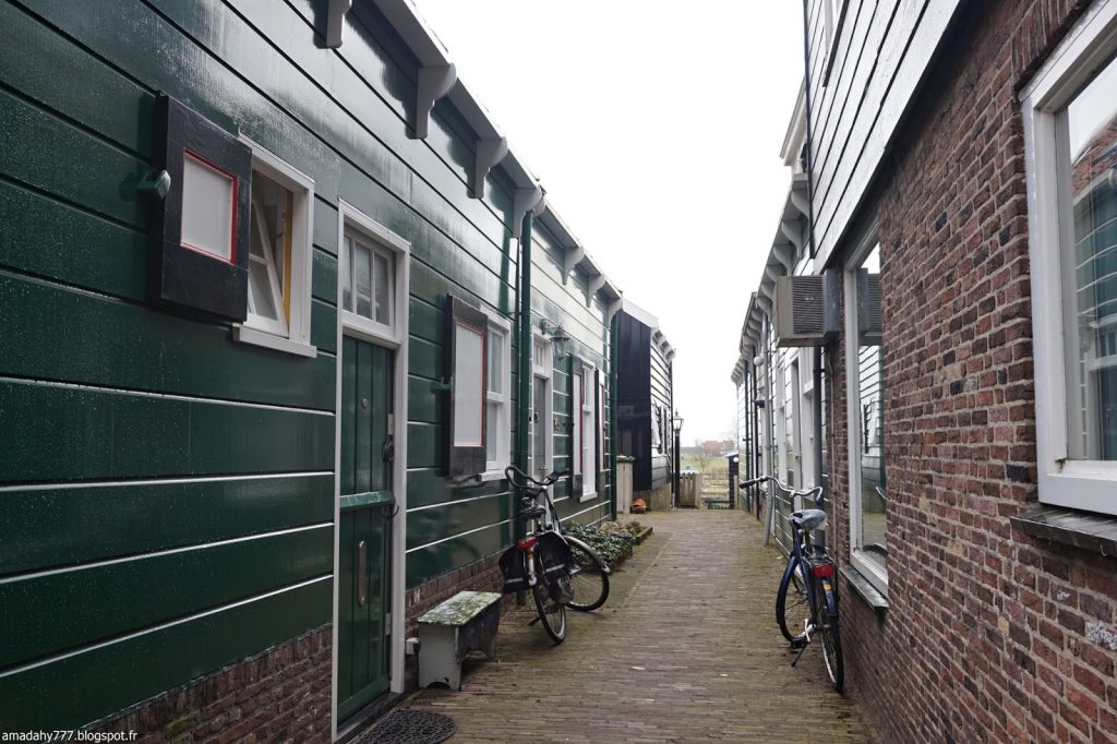 Marken est un beau petit village de pécheurs assez désert et silencieux en cette période. La pluie n'était pas loin, ce qui donnait l'impression d'être dans un village anglais sur la côte. Certaines maisons sont décorées à l'excès sur leur devant de porte, jusqu'au plus kitsch possible.