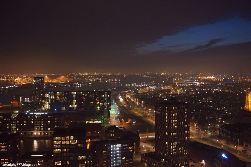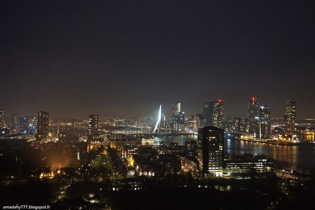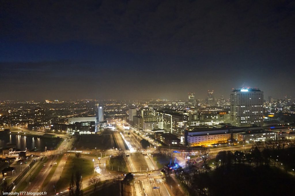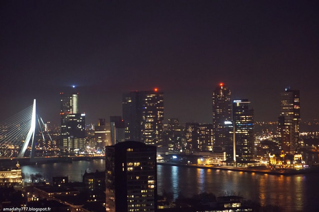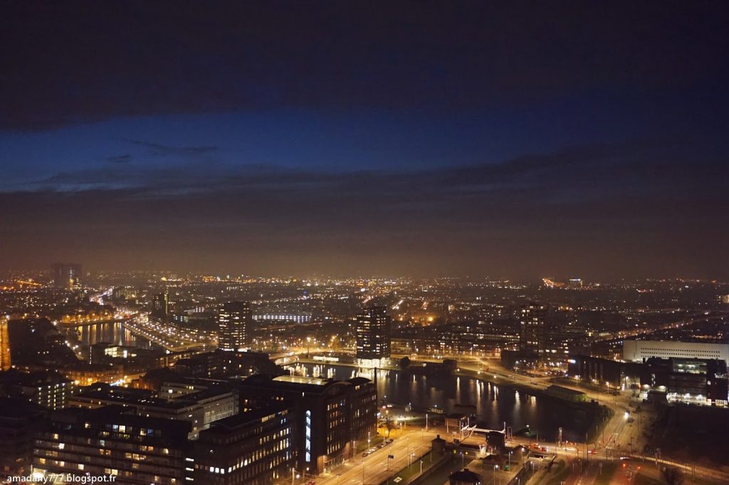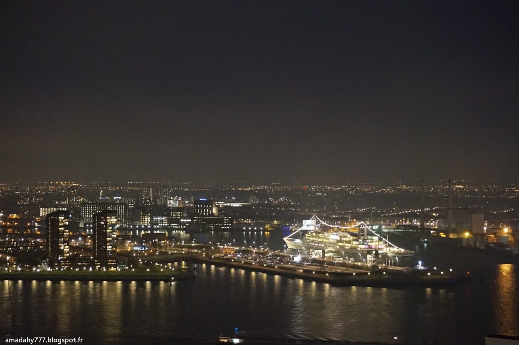 Cette tour gigantesque m'intrigue depuis mon arrivée ici. Tour de télécommunication, il est possible d'y monter pour une sommes modeste. Il y a un bar / resto au rez de chaussé et également en haut de la tour, et pour ce dernier soir à Rotterdam, avant d'aller passer quelques jours à Amsterdam, nous prenons quelques cocktails hauts-perchés à admirer la ville de nuit.