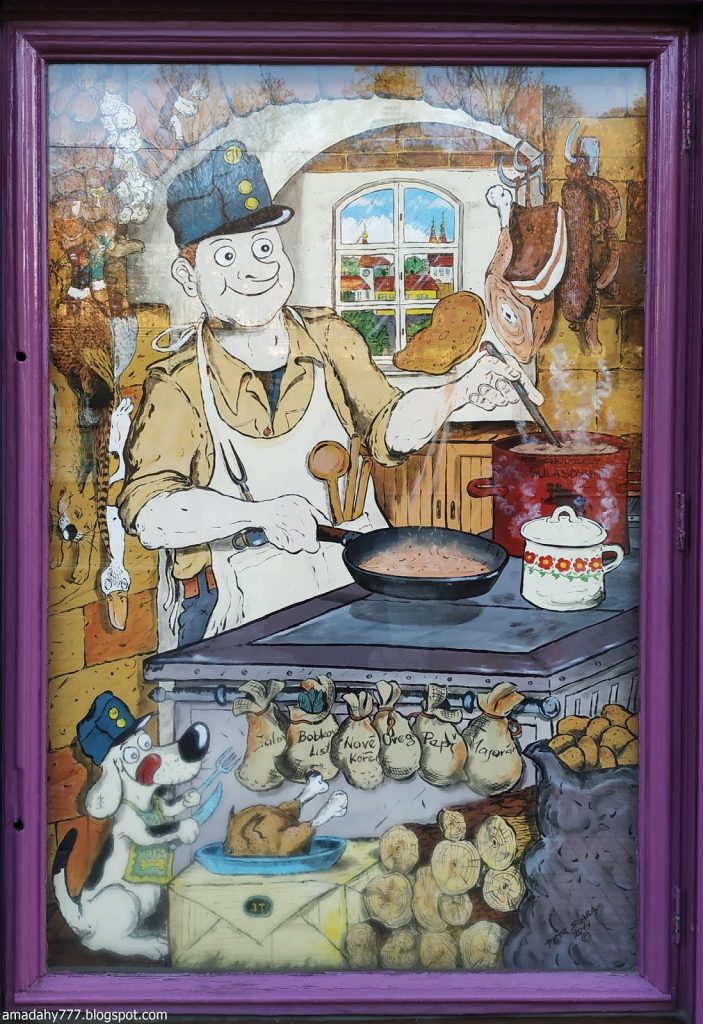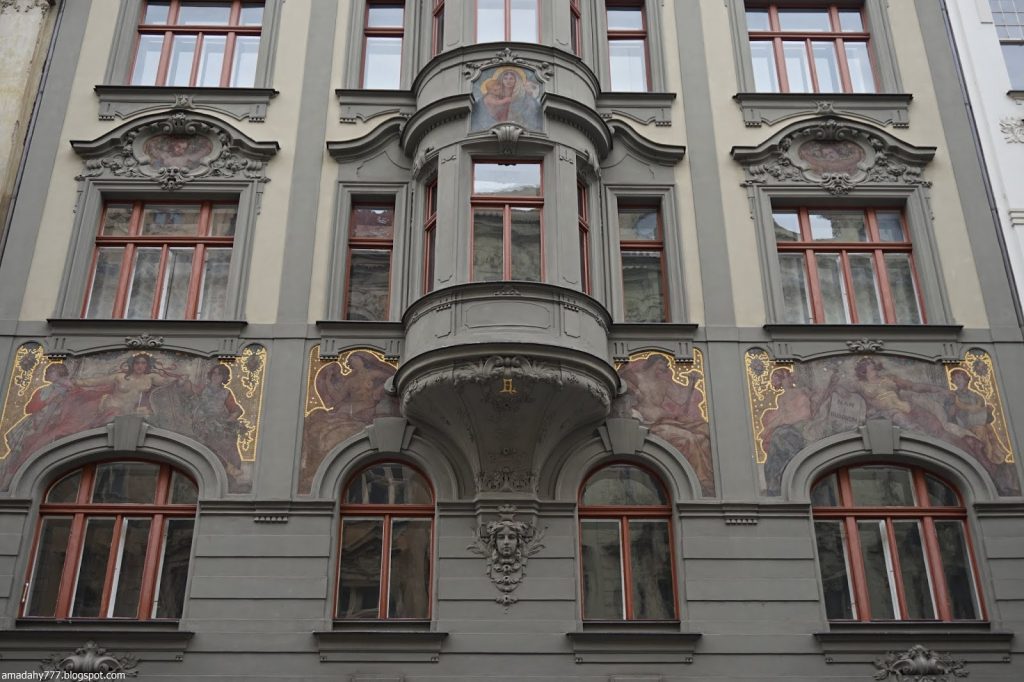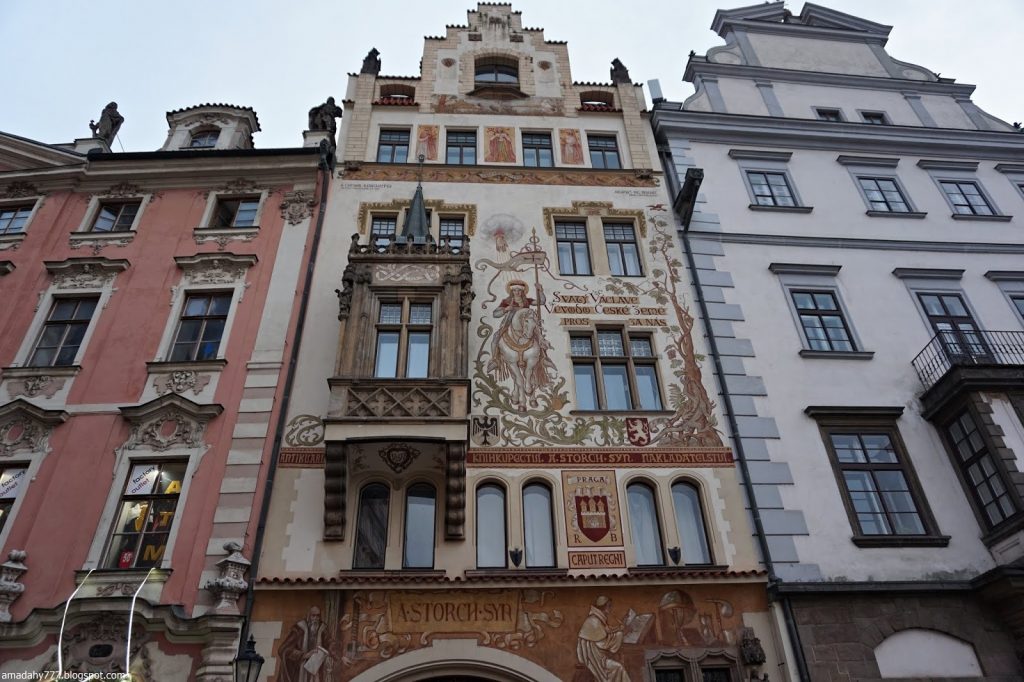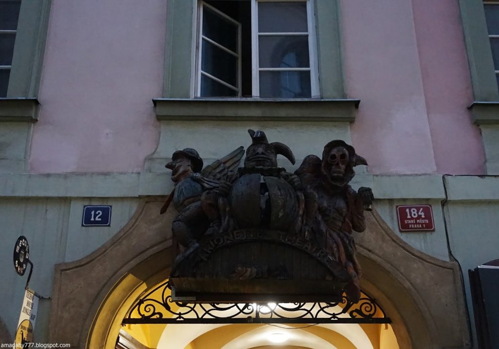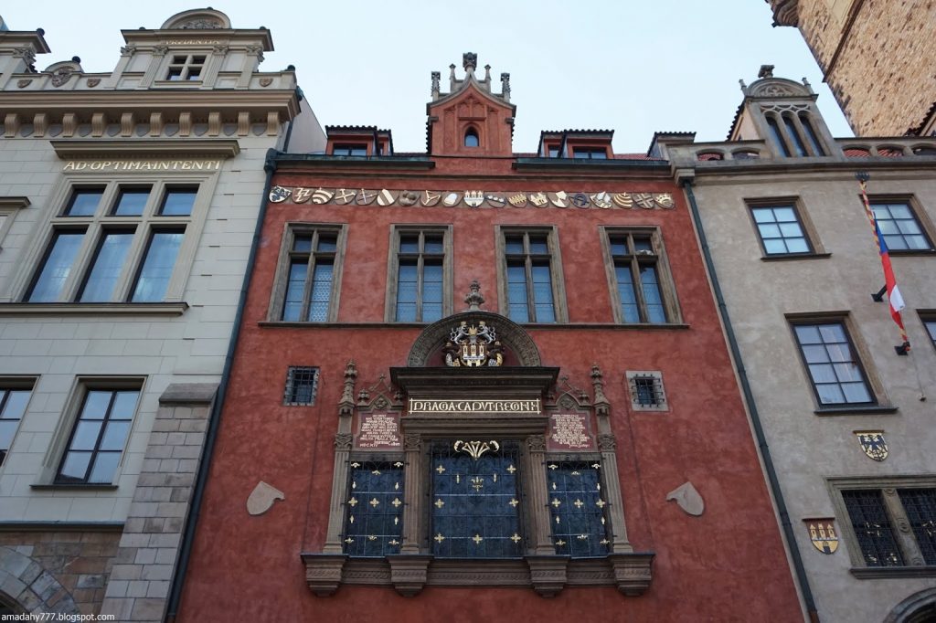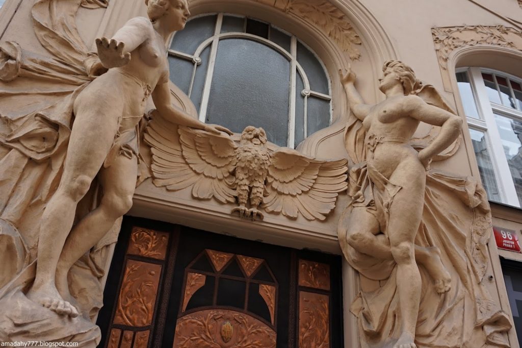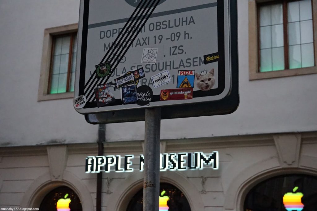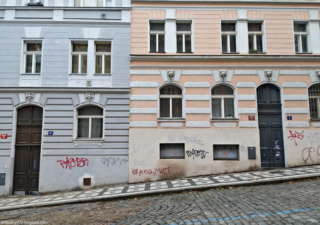 Kafka Tour de la Poudrière, collée au Musée MUCHA La tour de la vieille horloge, et ce "boudin" au sol, un obélisque détruit