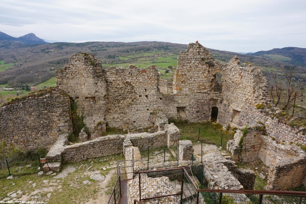 Sur la route de Collioure, nous passons aux pieds du Château de Montsegur et du château de Puivert (moins connu), qui sera celui que nous visitons car plus petit, la visite est plus rapide.