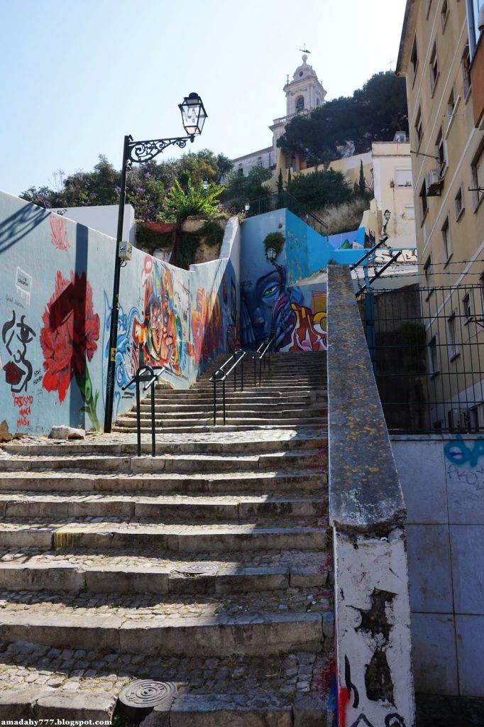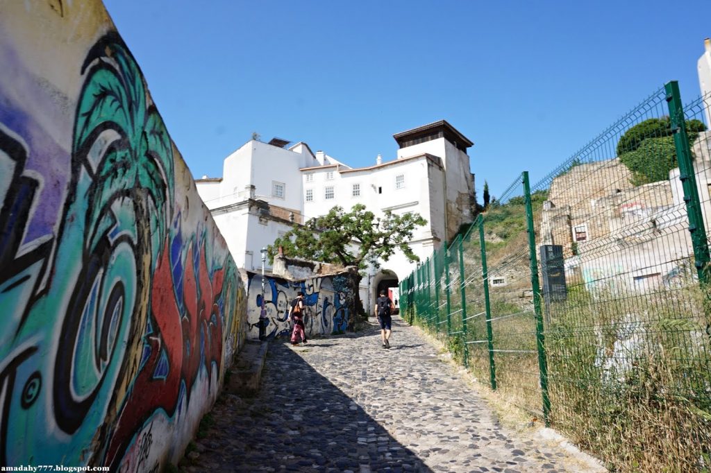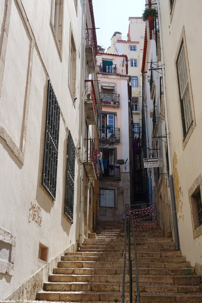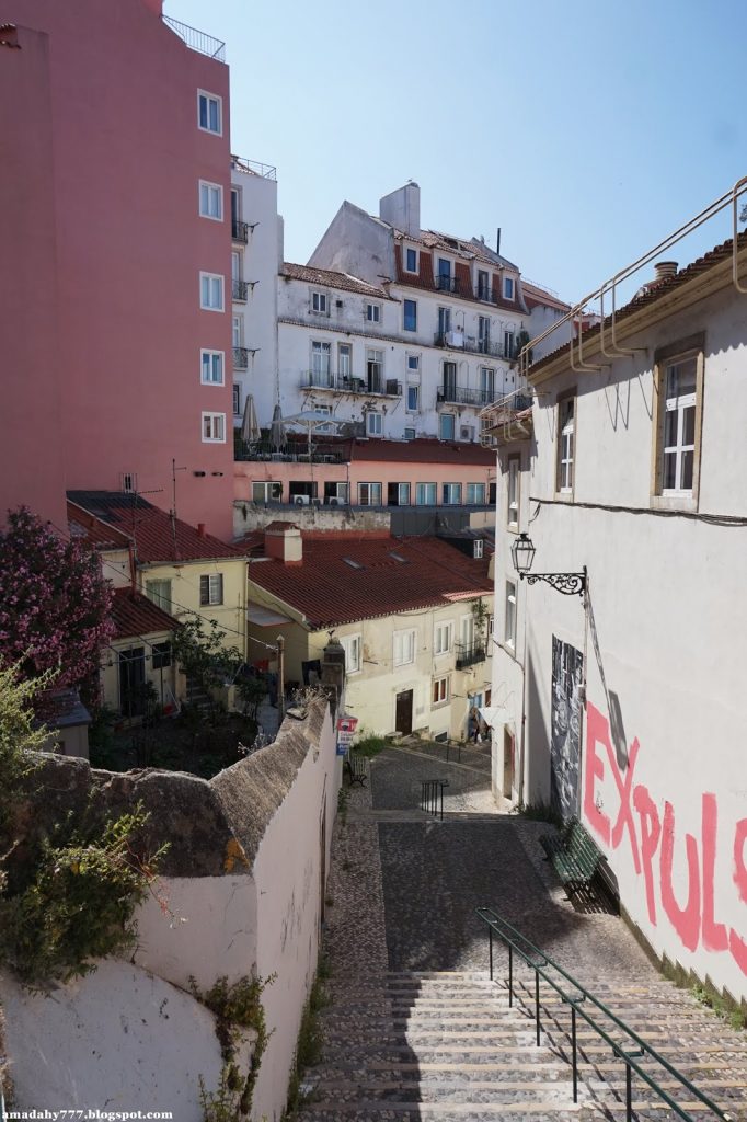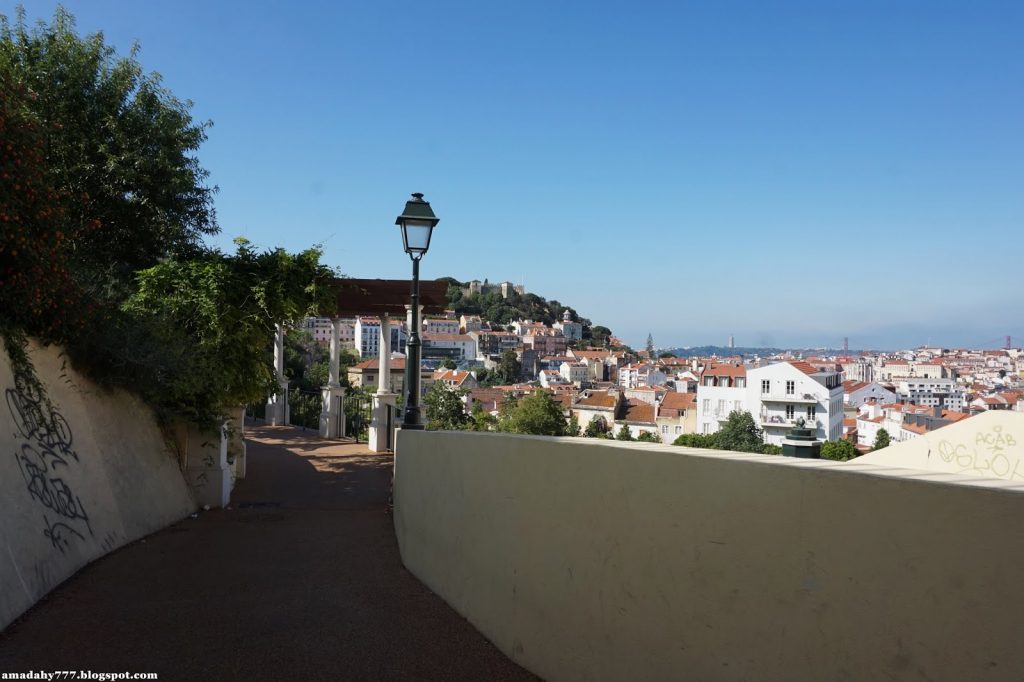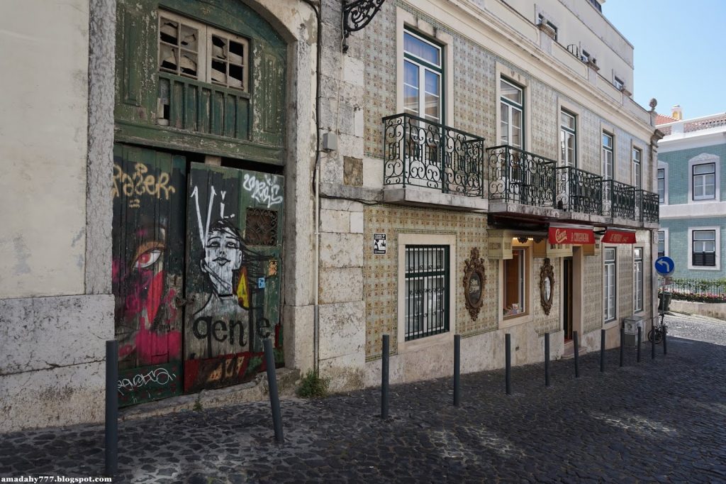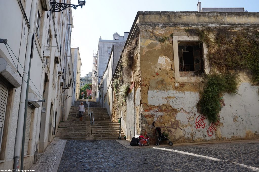 Au départ du quartier de l'Intendante direction le Miradouro de Graça. Je traverse les quartiers de Mouraria, passe devant le Château de Saint Georges et entame une décente de l'Alfama en direction des quartiers plus modernes de Baixa. Beaucoup d'escaliers, de montées, de graffitis, de poubelles, quelques chats sur les toits, pas mal de maisons abandonnées. La ville pue toujours autant et n'a franchement rien de grandiose ni de très beau. Pourtant, cette ville est agréable à vivre et à découvrir.