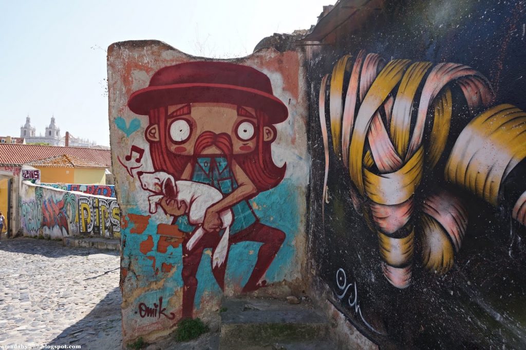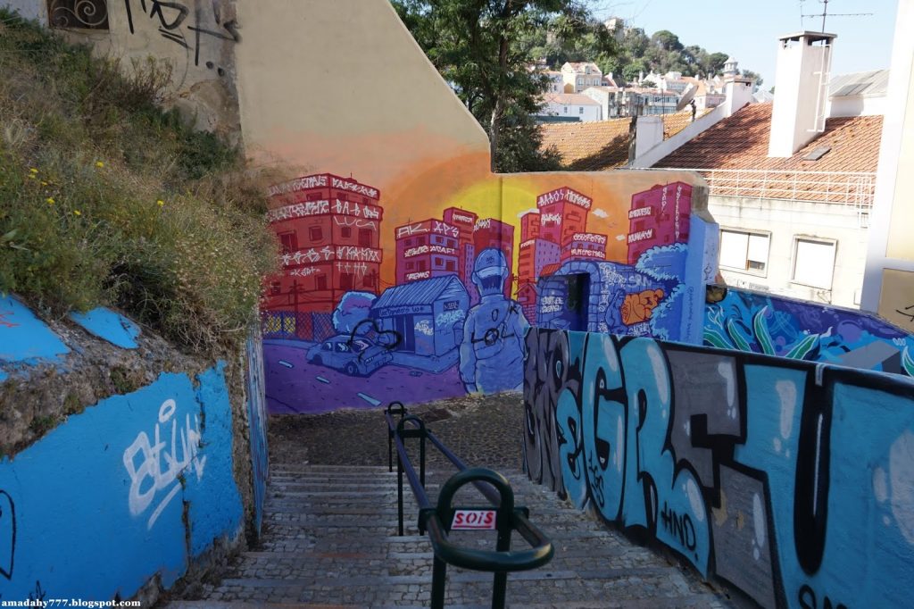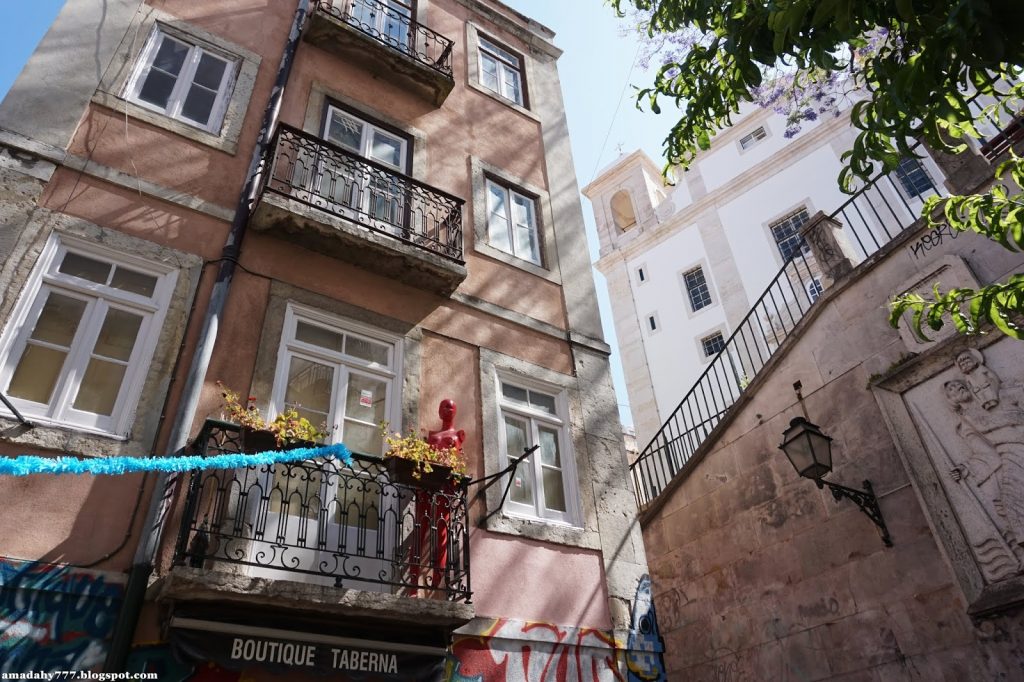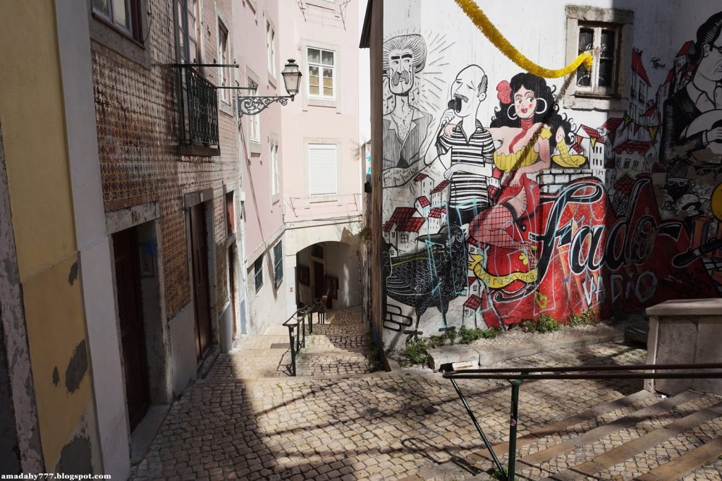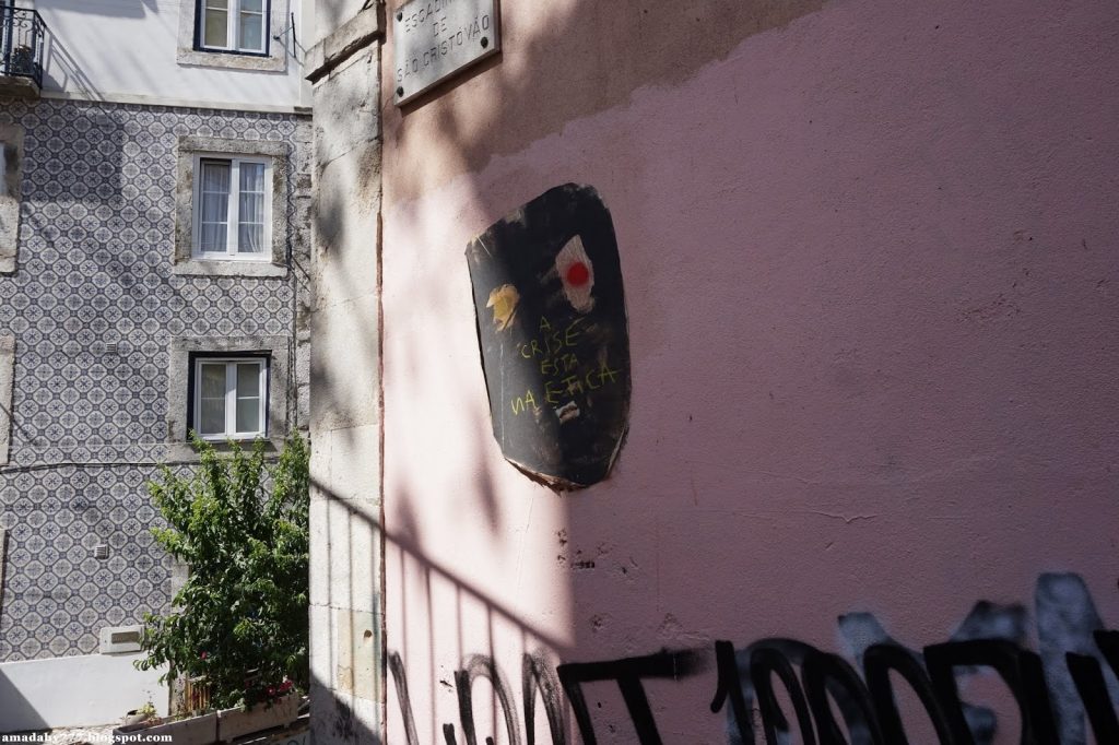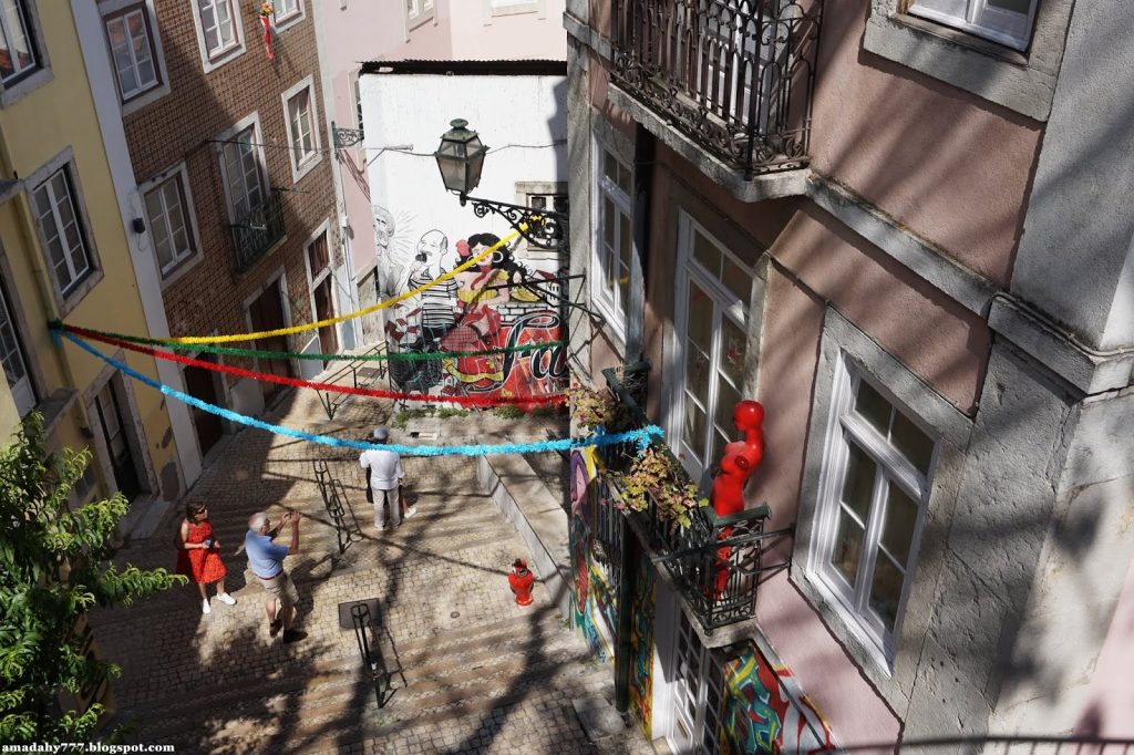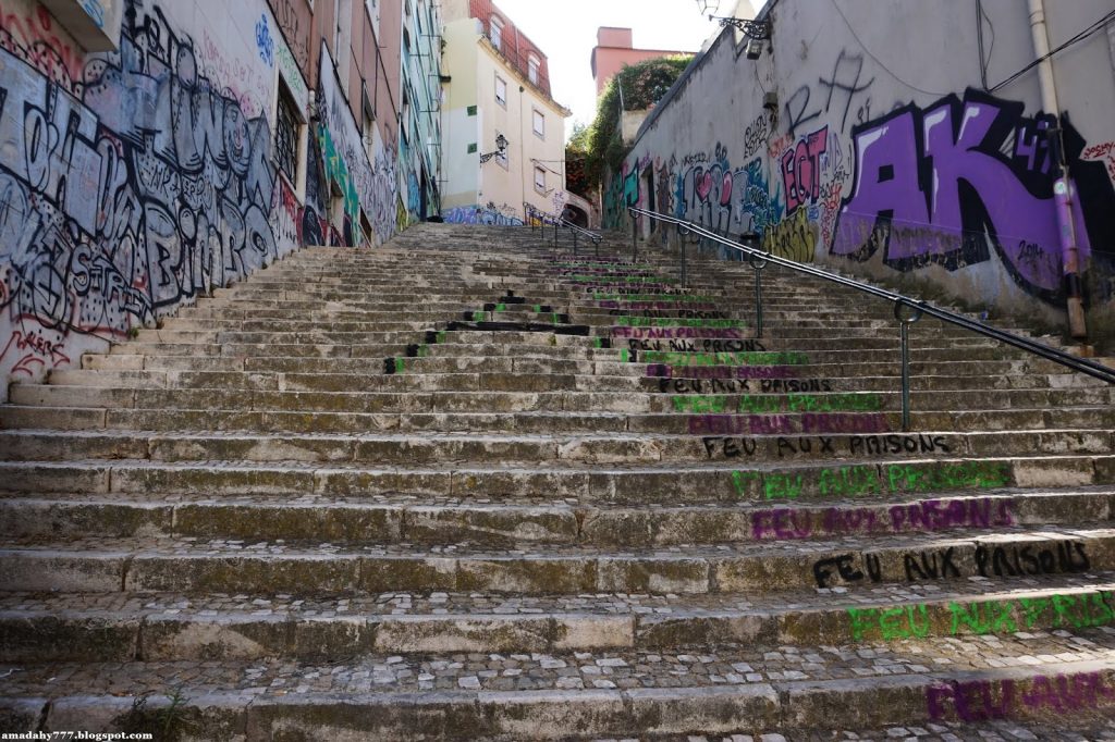 Au départ du quartier de l'Intendante direction le Miradouro de Graça. Je traverse les quartiers de Mouraria, passe devant le Château de Saint Georges et entame une décente de l'Alfama en direction des quartiers plus modernes de Baixa. Beaucoup d'escaliers, de montées, de graffitis, de poubelles, quelques chats sur les toits, pas mal de maisons abandonnées. La ville pue toujours autant et n'a franchement rien de grandiose ni de très beau. Pourtant, cette ville est agréable à vivre et à découvrir.