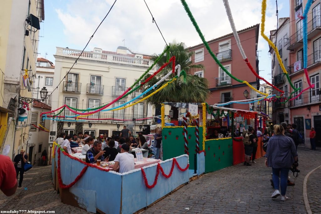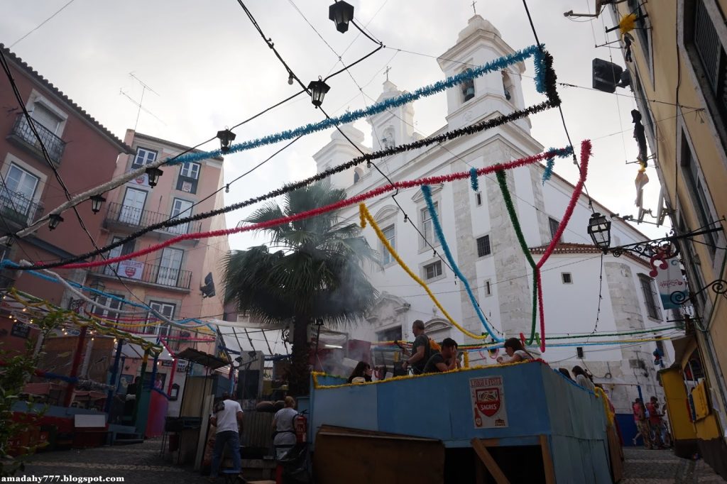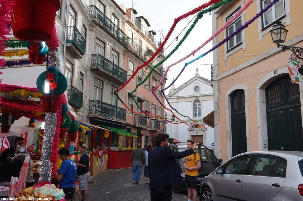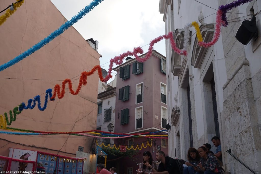 Les quartiers de Lisbonne sont en fête : Musique festive, aux sonorités hispaniques, quelques mètres plus loin le Fado prend le dessus. Une odeur de sardine grillée embaume toutes les rues animées d'une ambiance agréable.