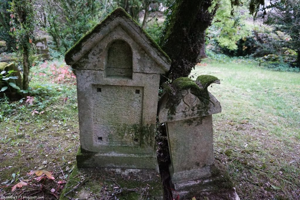 Joyeux mois des sorcières ! Joyeux mois de Samhain ! octobre, le mois de l'autonme, est aussi le mois des sorcières et de la préparation à la fête des morts. Samain est une fête rituel celtique, c'est le nouvel an païen, sous le signe de la transition. Comme l'autonome invite à se recentrer sur soi, à finir au plus vite les dernières cueillettes, à se préparer à l'hiver, et préparer le futur, améliorer son confort, elle invite à fêter la fin d'un cycle, afin d'en recommencer un nouveau... Bref donc quel meilleur moment pour se promener en forêt et visiter les cimetières ? Encore plus quand les cimetières sont ancien, en ruine, et sous de magnifiques arbres ?