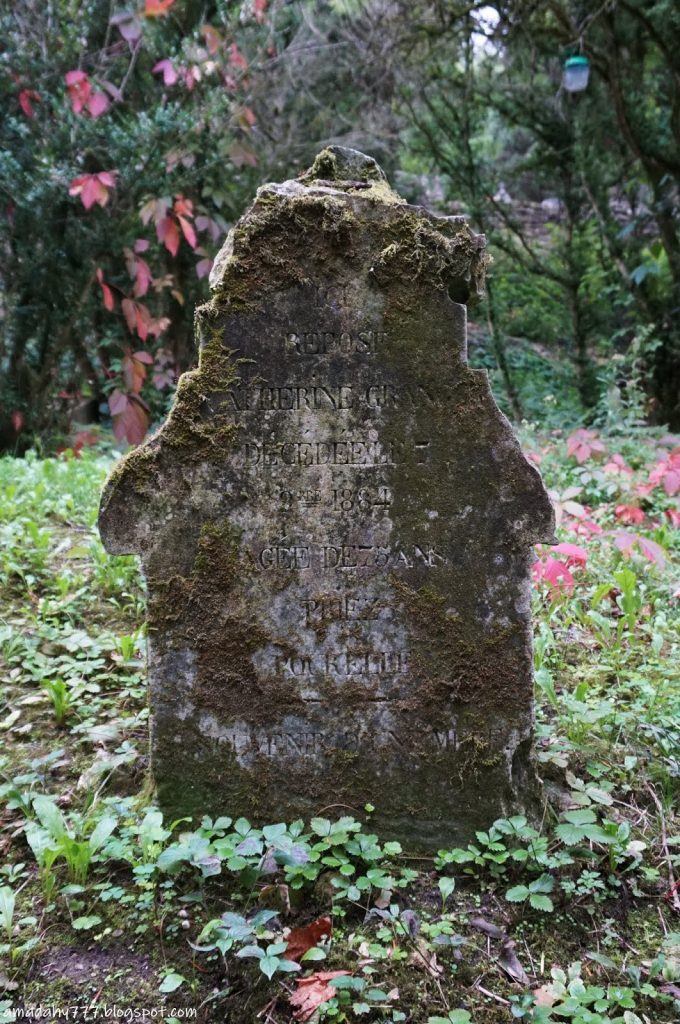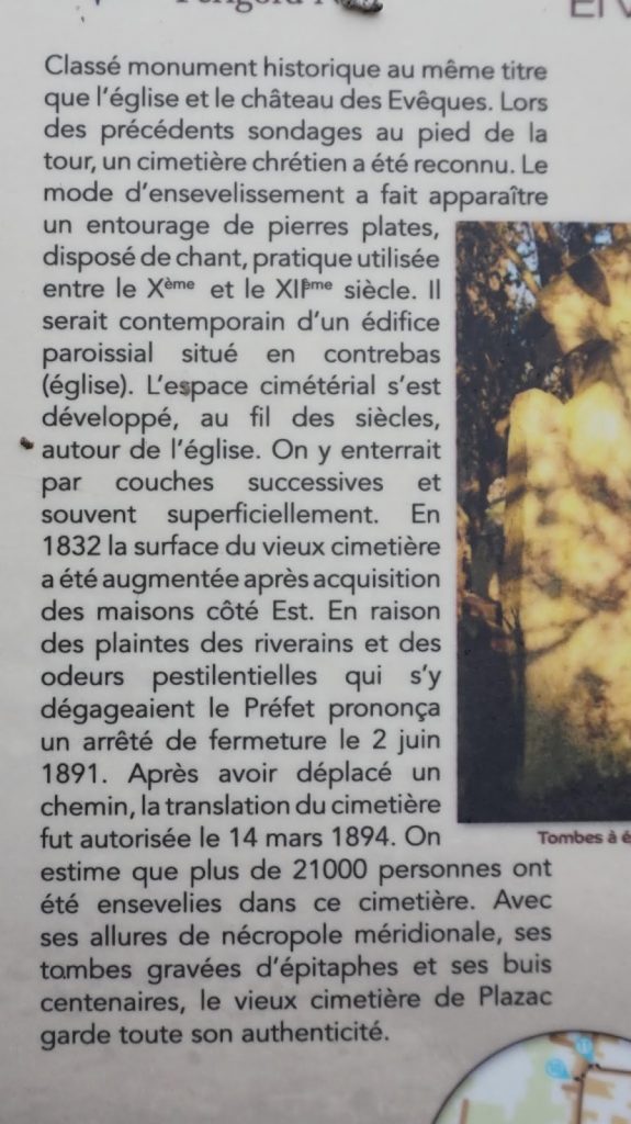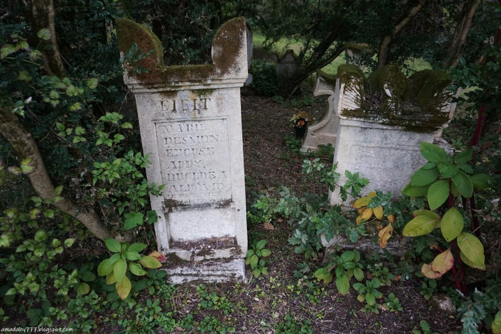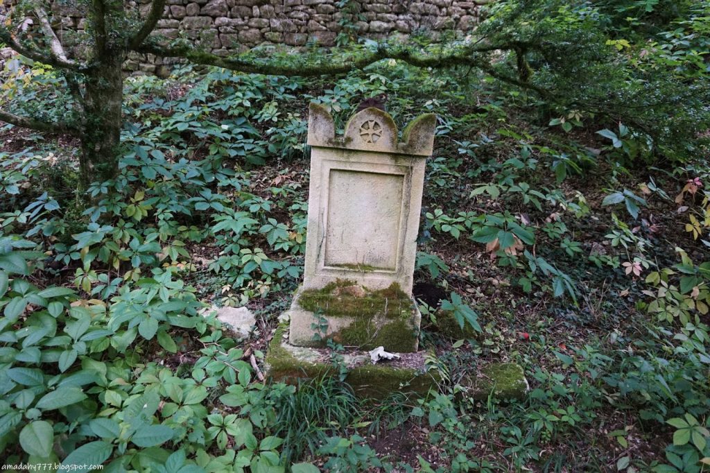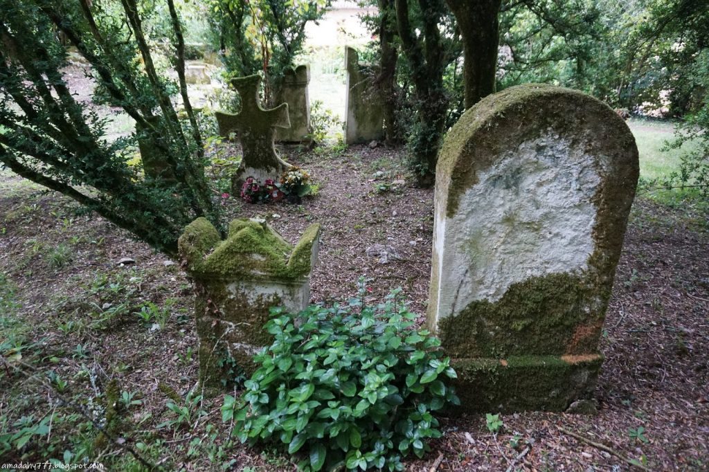 Voici donc le paisible petit cimetière de Plazac, village qui paye pas trop de mine, en Dordogne. Après avoir monté une colline dont la pente est vraiment très raide, pour rejoindre une église, il faut emprunter un charmant petit chemin de pavé et d'escalier (et oui, on monte encore !) celui ci contourne l'église en de petites ruelles, et nous fait tomber nez à nez avec ces vieilles pierres. L'endroit invite à la méditation. Mais on peut aussi imaginer que des vampires sortiront de terre à la nuit tombée, ou bien que des sorcières viennent faire leur sabbat ici ! Pas besoin de regarder la série des Nouvelles aventures de Sabrina (l'apprentie sorcière) pour faire déborder son imagination ici !