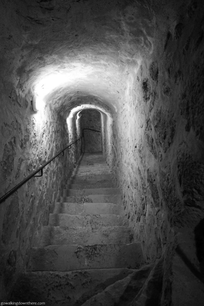 J'ai pu partager ma visite avec une femme qui voyageait seule aussi et heureusement, via les bavardages, la visite parue ainsi plus rapide et moins anxiogène. Sauf pour le tunnel où j'ai suivi aveuglement un couple à qui je n'avais même pas adressé la parole, me persuadant que si je marchais assez vite pour ne pas les perdre de vus ou être en capacité d'être entendue si je venais à hurler de peur d'être enfermée dans ce long tunnel d'escaliers interminables, je serais secourue et je ne mourrais pas emmurée ici.